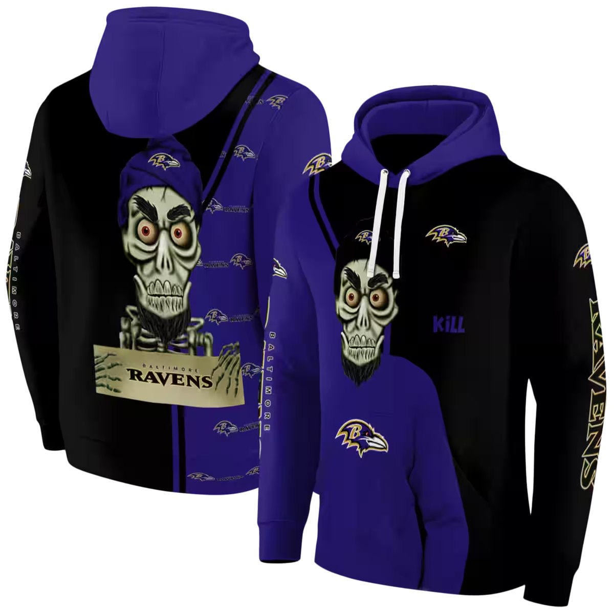 Baltimore Ravens Achmed Skull Purple Black AOP Hoodie