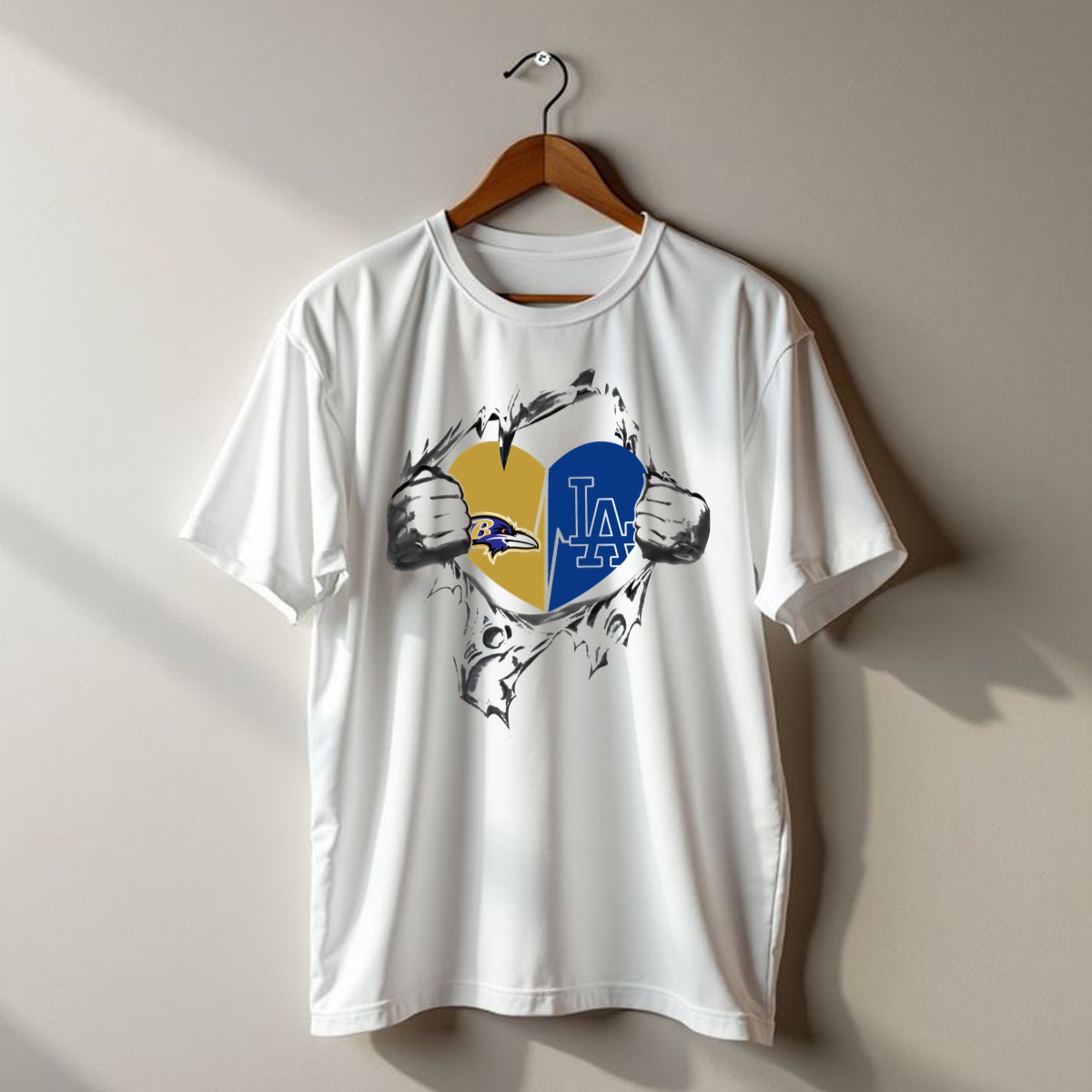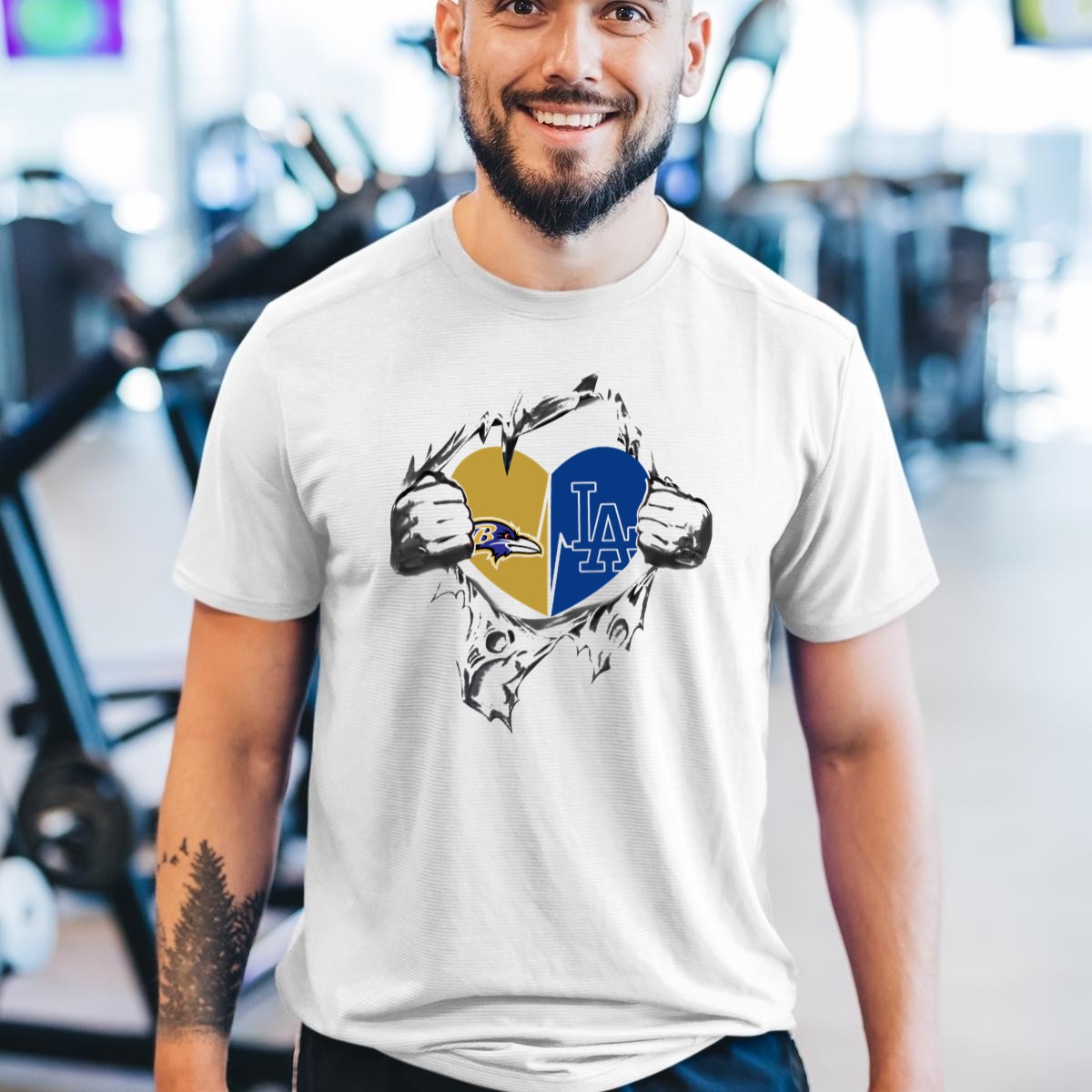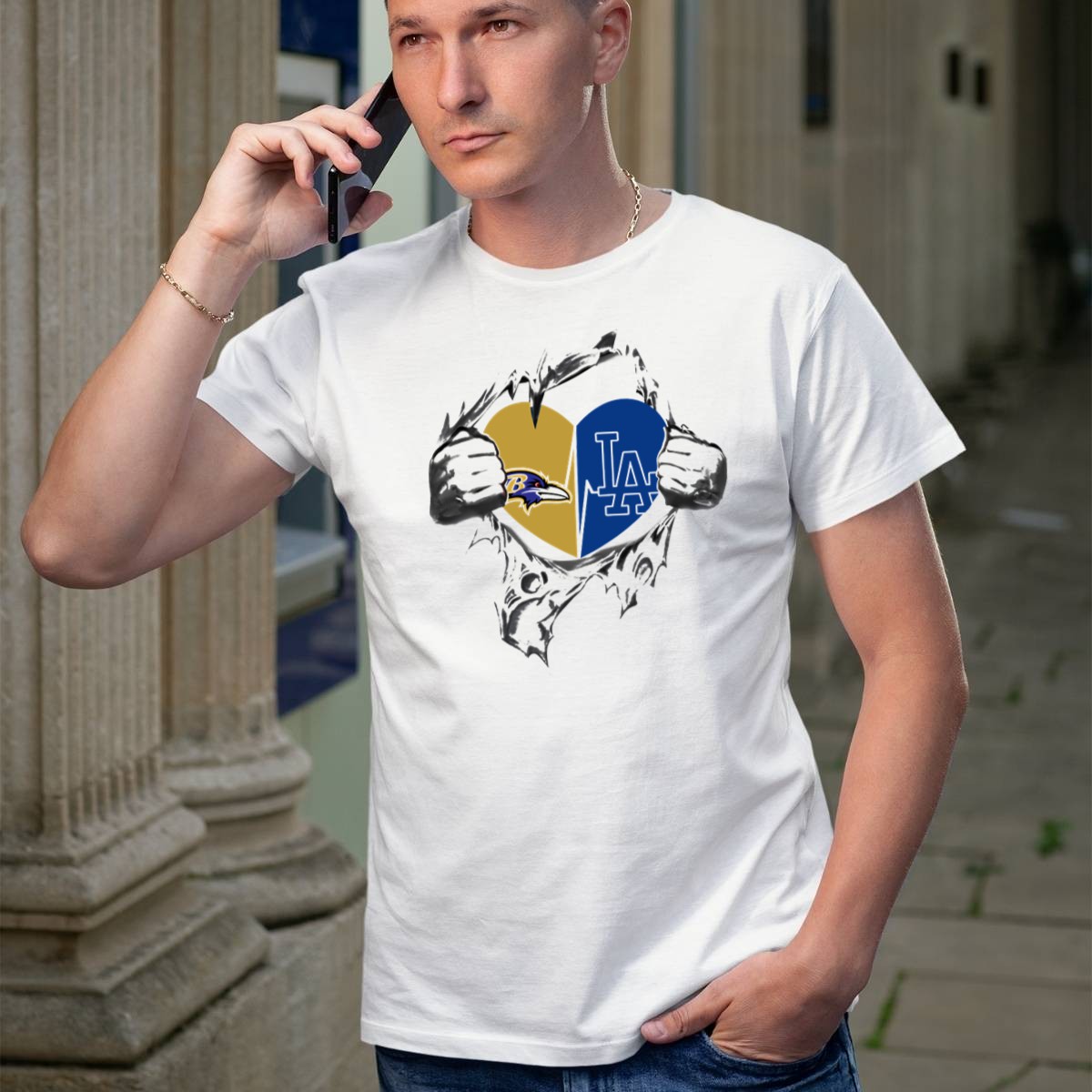 Baltimore Ravens and Los Angeles Dodgers Heart T-Shirt