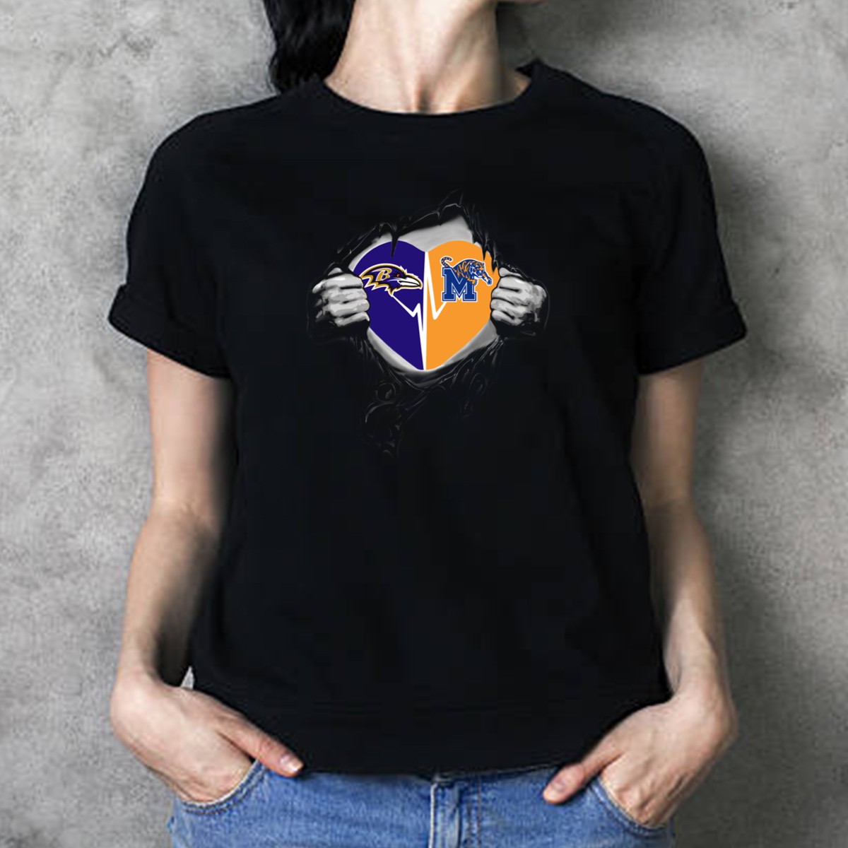 Show your team spirit with our Baltimore Ravens and Memphis Tigers Heart T-Shirt! This fan-made design is perfect for dedicated supporters who want to showcase their love for both teams in style. Made for casual wear, themed events, or simply everyday activities, this shirt combines comfort and personality, making it a unique addition to any fan’s wardrobe. Celebrate your passion while enjoying the soft, breathable fabric that keeps you comfortable no matter the season.