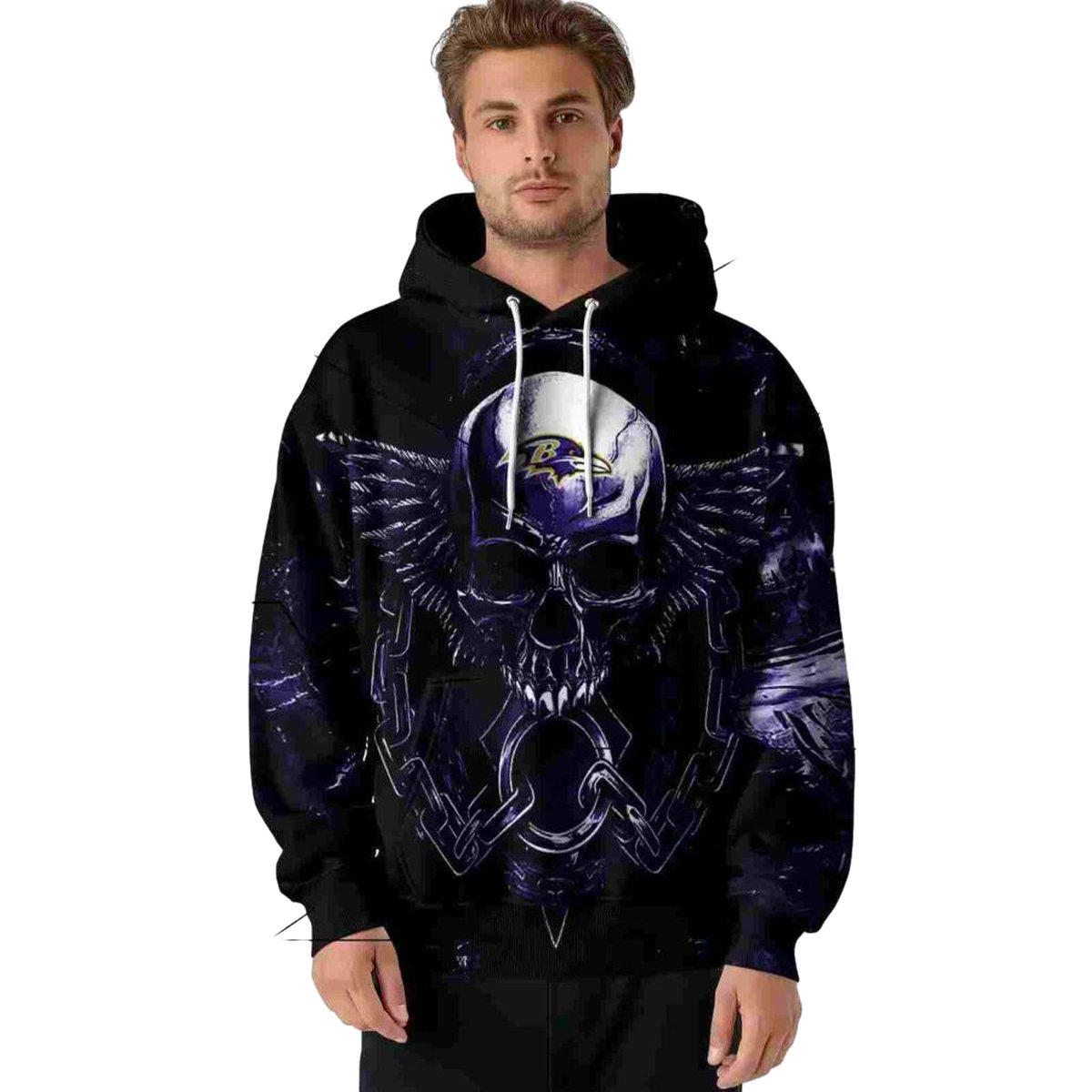 Elevate your casual look with our Baltimore Ravens Angel Skull Artwork Hoodie, designed for passionate fans and streetwear enthusiasts alike. This unique all-over print hoodie is perfect for game days, hanging out with friends, or enjoying outdoor activities during the cooler months. Its standout design sets it apart, making it a must-have for anyone looking to express their team spirit with style.