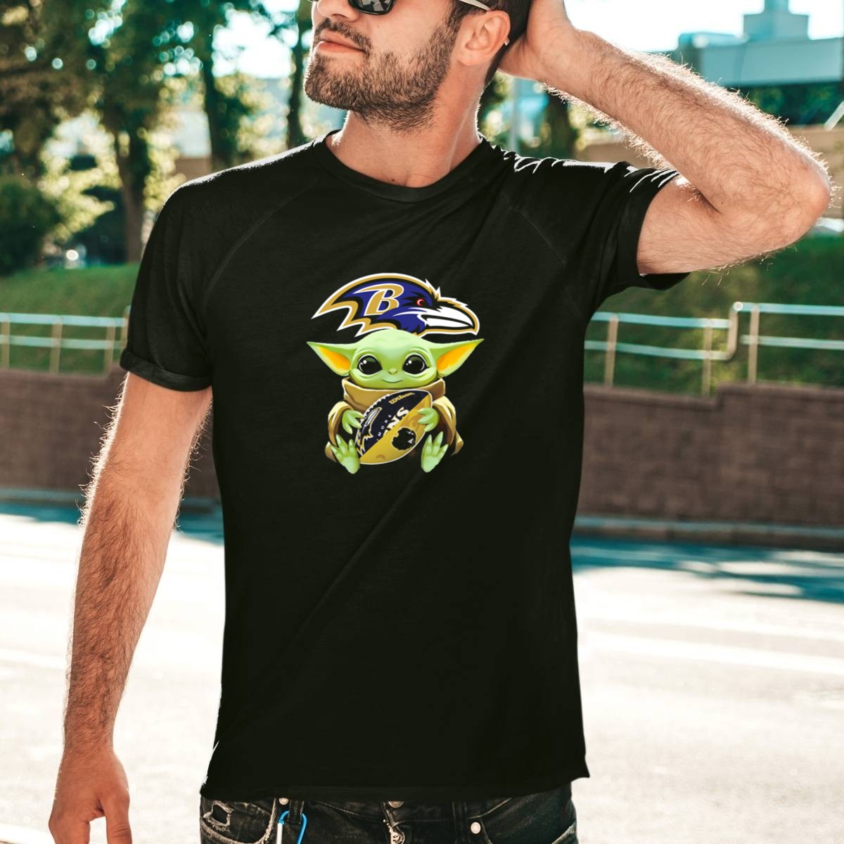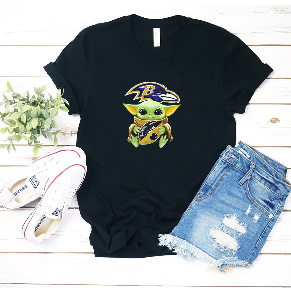 Baltimore Ravens Baby Yoda Holding Football With Team T-Shirt