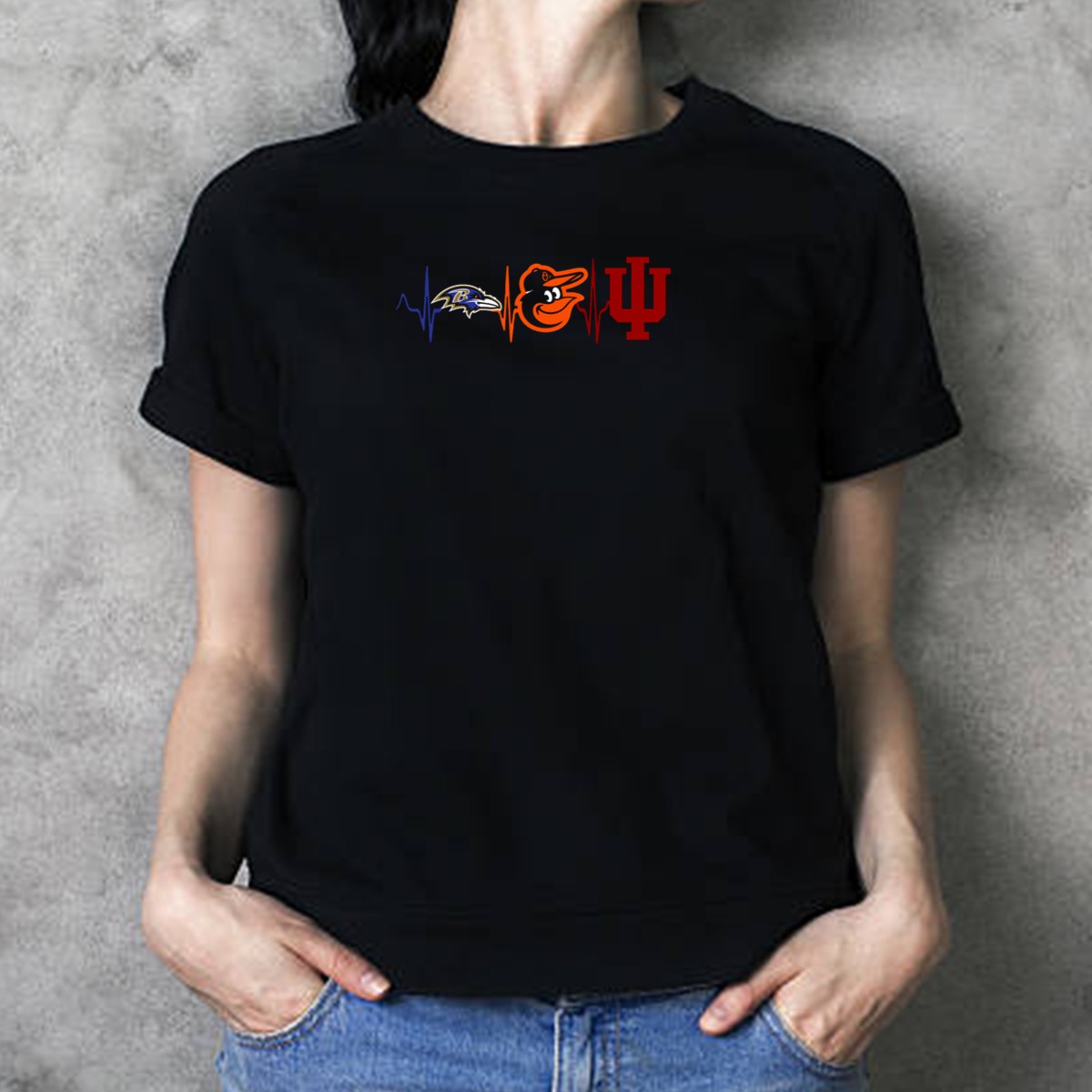 Baltimore Ravens Baltimore Orioles Indiana Hoosiers Heartbeat T-Shirt