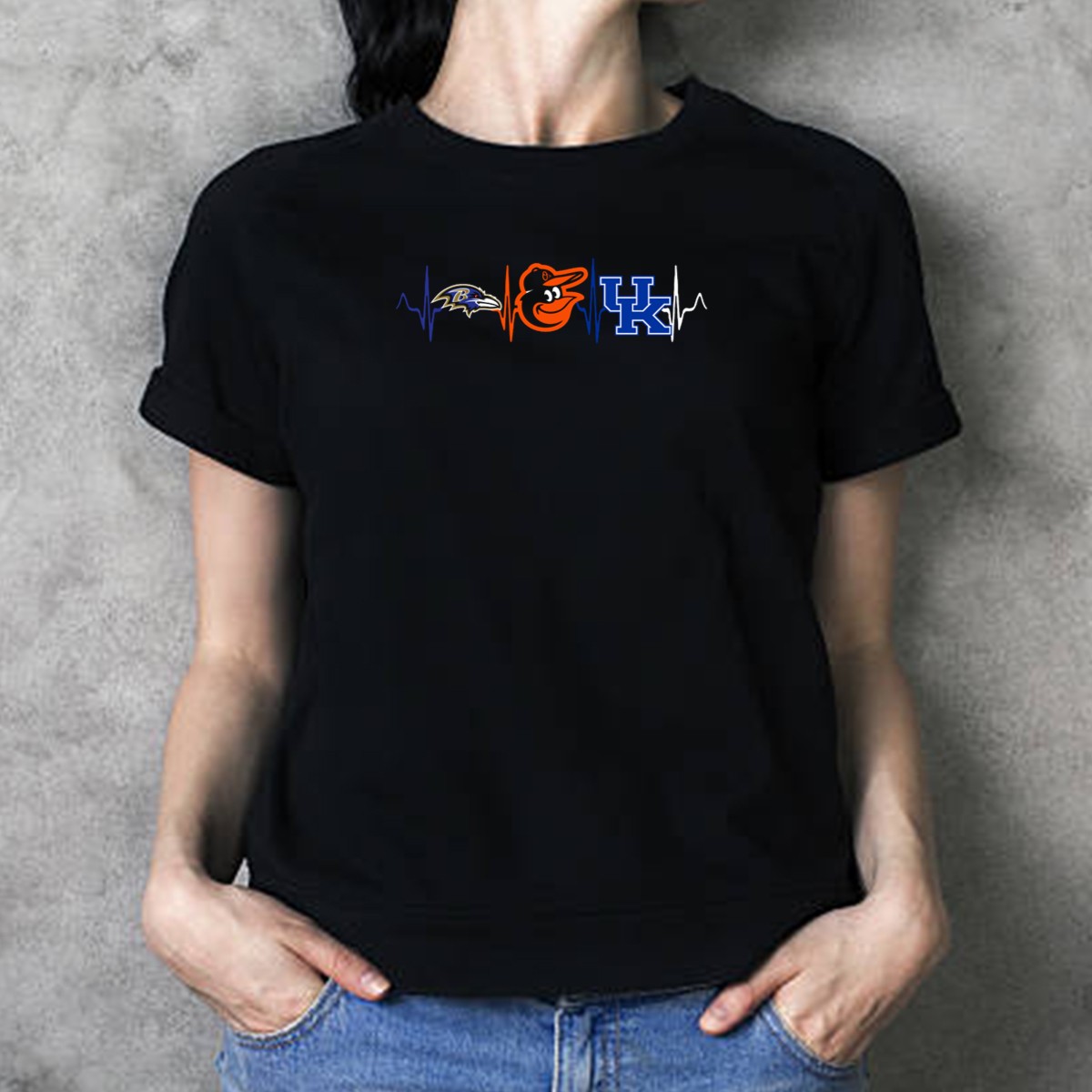 Show off your love for Baltimore sports with this vibrant fan-made graphic T-shirt featuring the heartbeat design that combines the Baltimore Ravens, Baltimore Orioles, and Kentucky Wildcats. Perfect for passionate fans, this shirt is ideal for casual outings, themed events, or simply displaying your team spirit during daily wear. Made in the USA, it blends comfort with a unique style that sets you apart from the crowd.