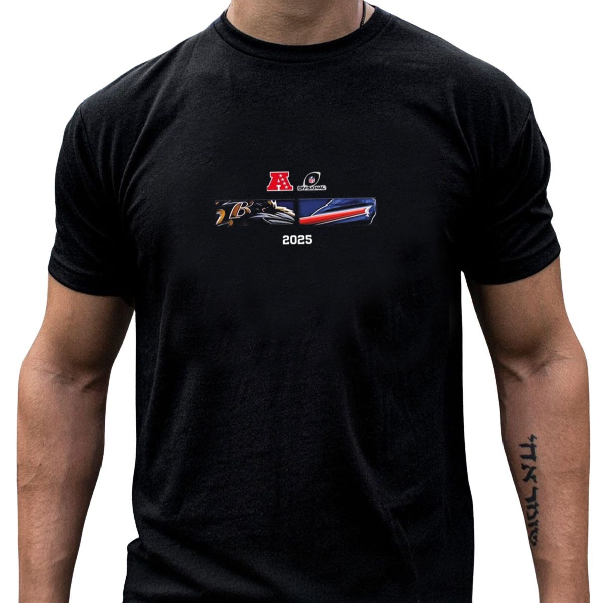 Show your support for the Baltimore Ravens and Buffalo Bills in style with our exclusive 2025 AFC Divisional Matchup T-Shirt. Perfect for die-hard fans and casual wear alike, this shirt is ideal for game day, themed events, or simply lounging around while cheering for your favorite team. The unique fan-made design, printed in the USA, captures the spirit of the matchup, making it a must-have addition to any football enthusiast’s wardrobe.
