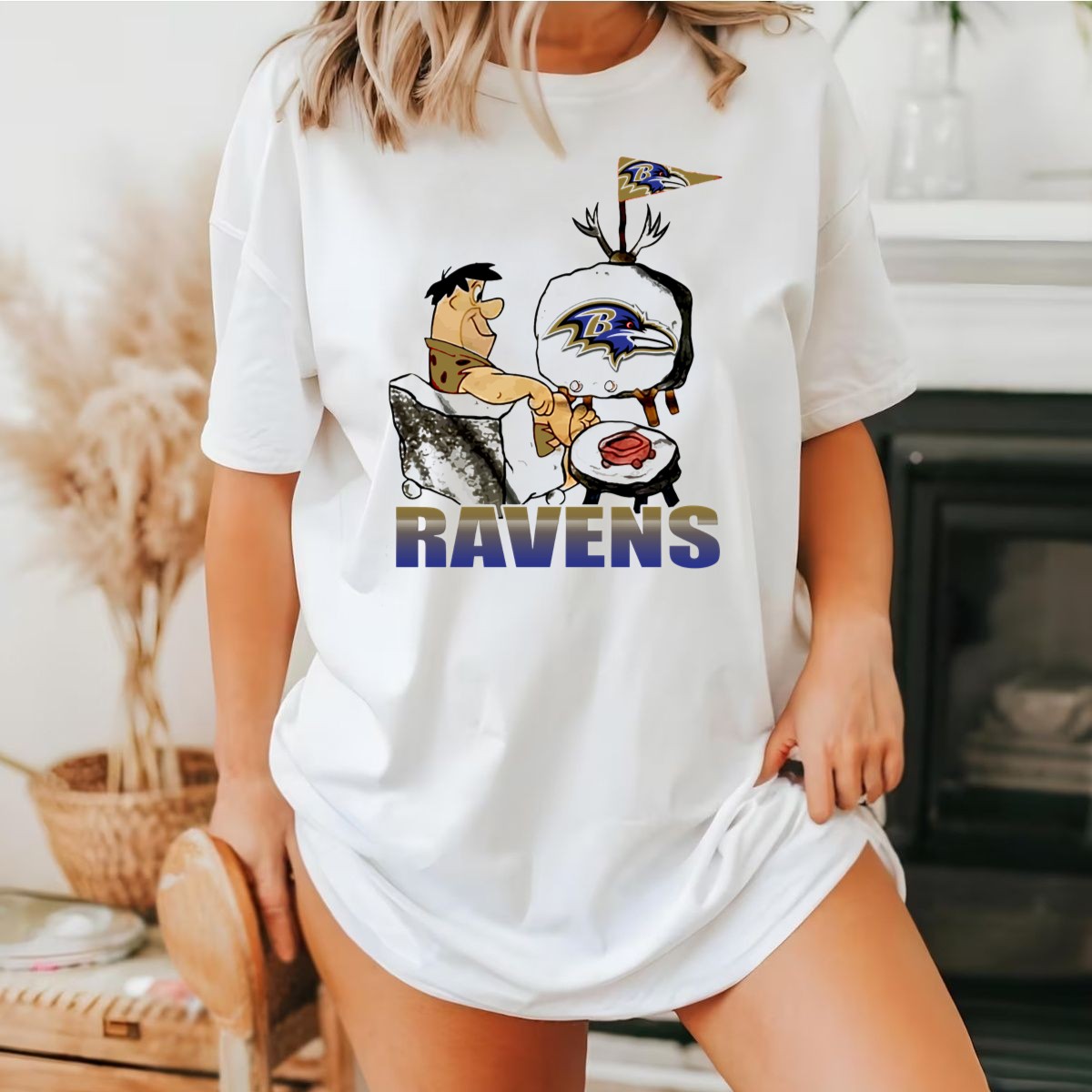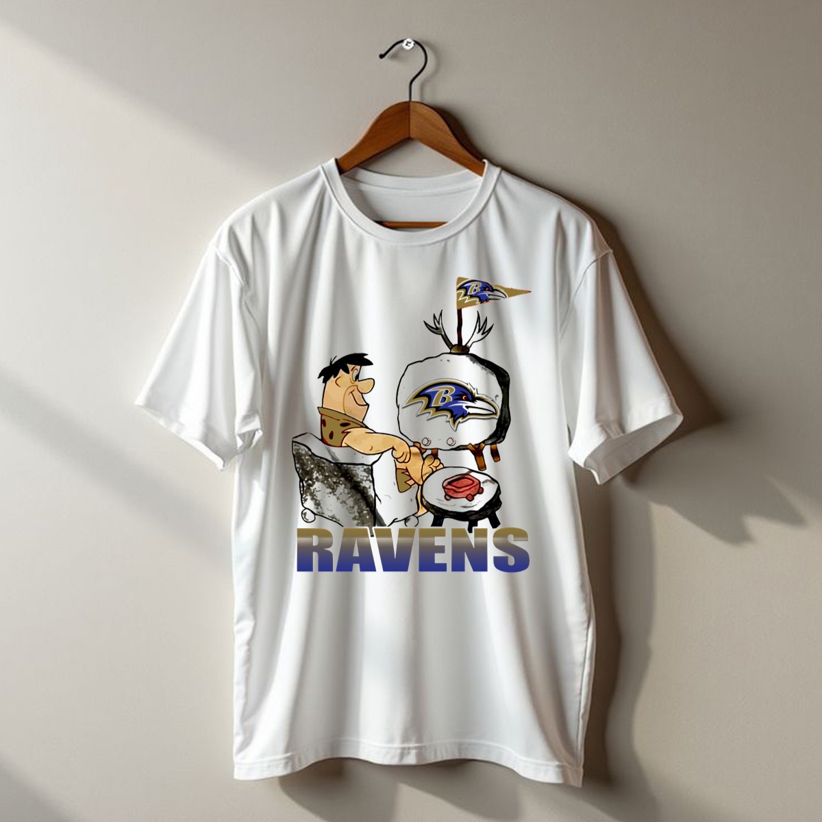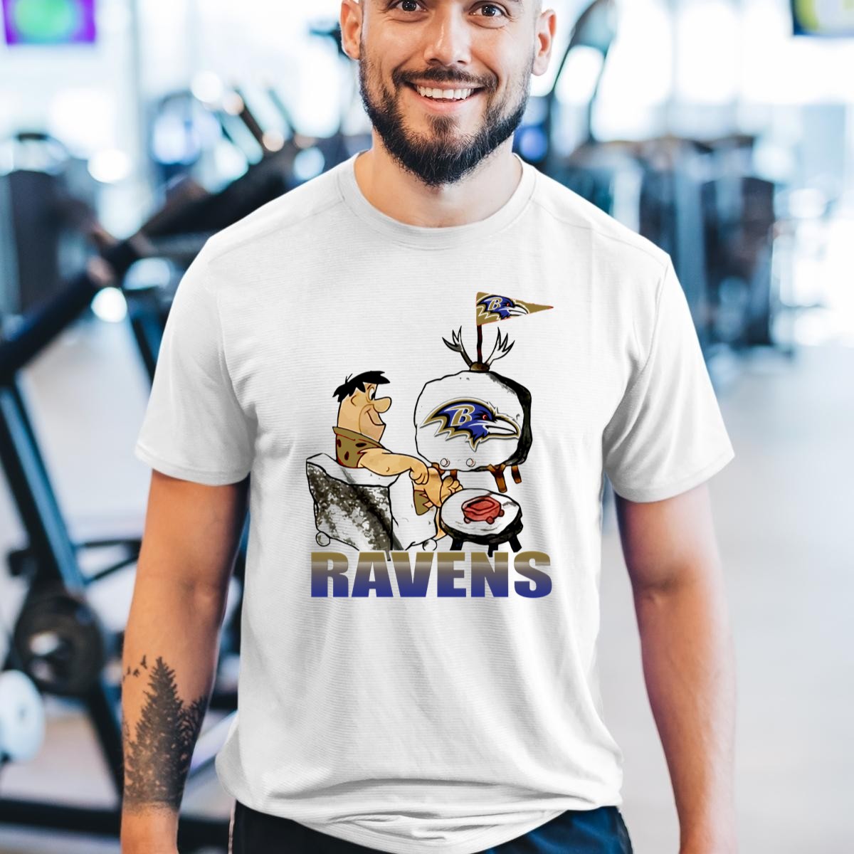 Baltimore Ravens Cartoon Character Watching Tv With Team T-Shirt