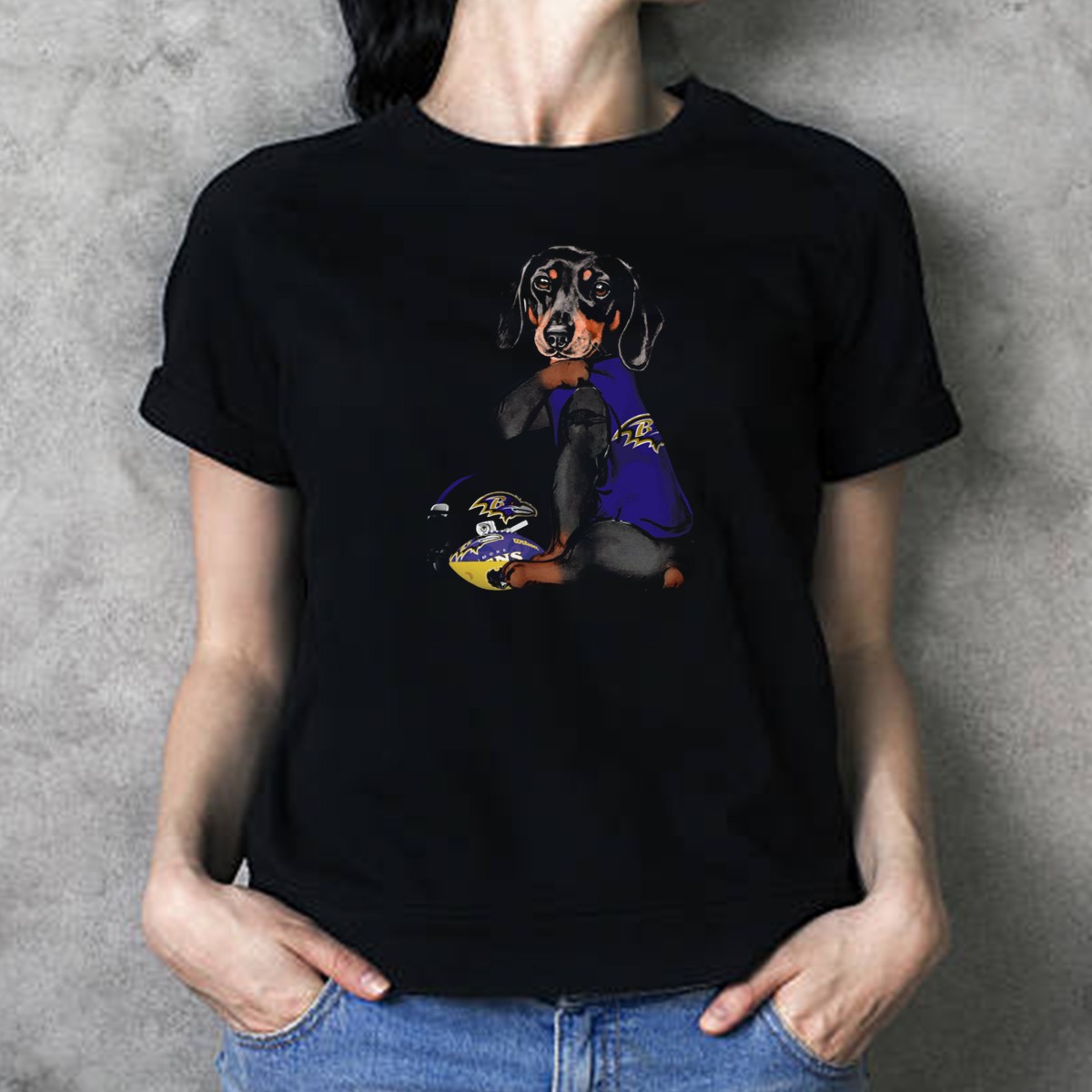 Baltimore Ravens Dachshund Wearing Team Jersey with Football Helmet T-Shirt