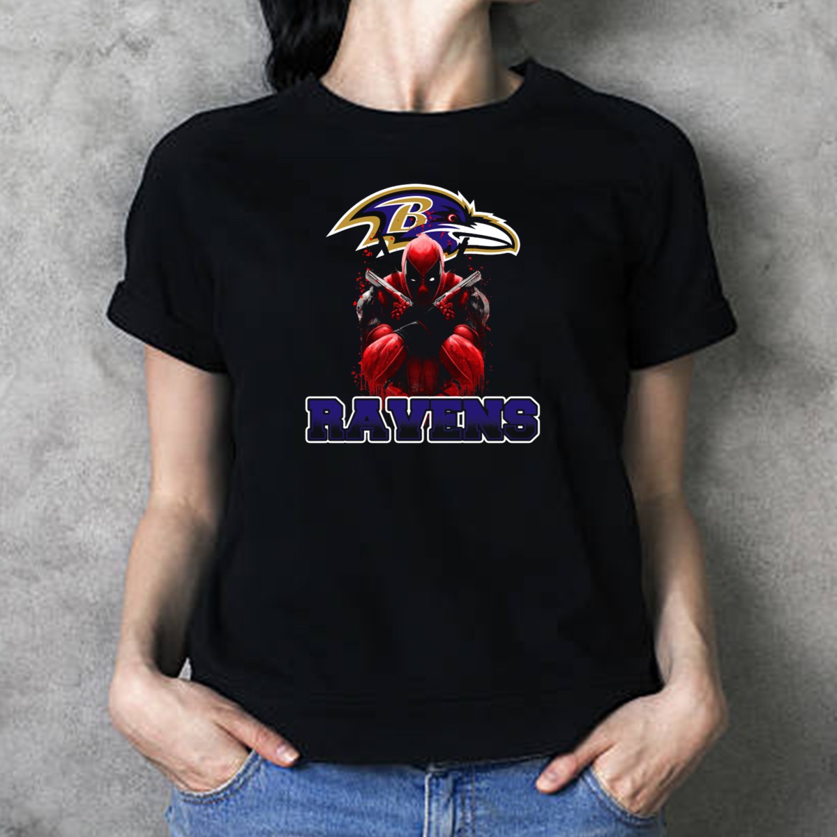 Unleash your inner superhero with our Baltimore Ravens Deadpool Crossed Swords Fan Combo T-Shirt! This unique design is perfect for passionate fans who love to showcase their team spirit while celebrating their favorite anti-hero. Crafted for casual wear, themed events, or just a laid-back day, this shirt combines comfort and style, making it an ideal addition to any fan’s wardrobe. Printed in the USA, this fan-made design stands out with its bold graphics and vibrant colors, ensuring you make a statement wherever you go.