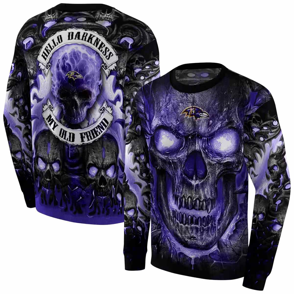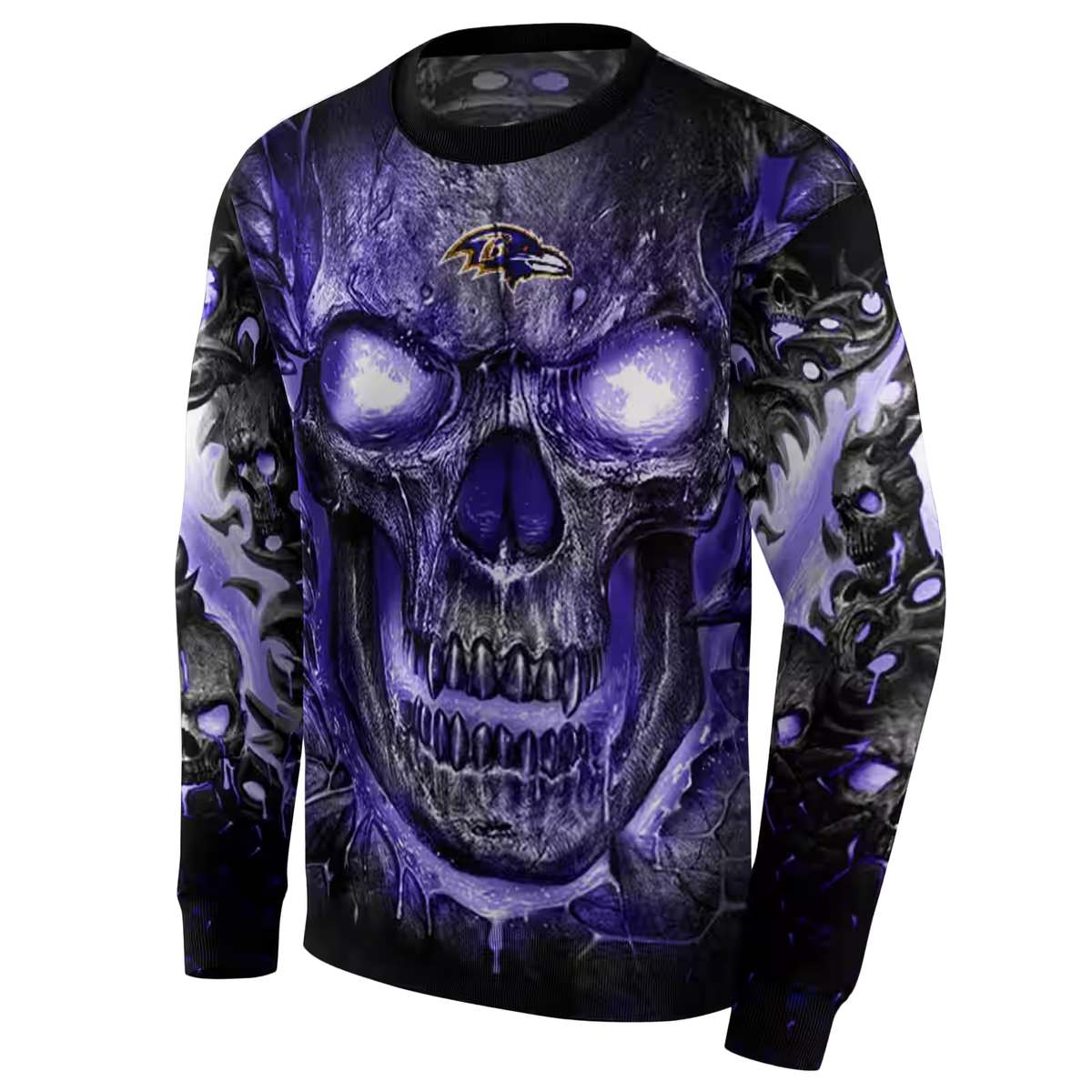 Elevate your streetwear game with our Baltimore Ravens Demonic Skull Purple Black AOP Sweatshirt, designed for fans who want to make a bold statement. This unique piece is perfect for casual outings, school, or lounging at home. With its eye-catching graphic and relaxed fit, it’s not just a sweatshirt; it’s a lifestyle choice that showcases your passion for the game and your individual style.