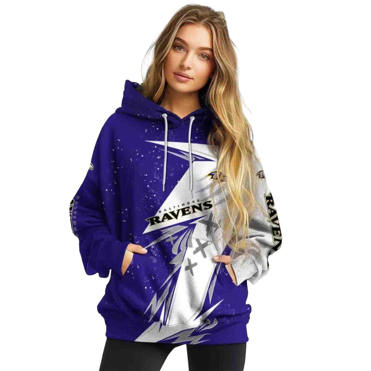 Show your team spirit with the Baltimore Ravens Dynamic Slash Purple White AOP Hoodie, perfect for passionate fans and anyone who loves to showcase their style. This versatile hoodie is ideal for daily wear or casual outdoor activities during the cooler months, making it a must-have addition to your wardrobe. Its unique all-over print design ensures you stand out while staying comfortable and cozy.
