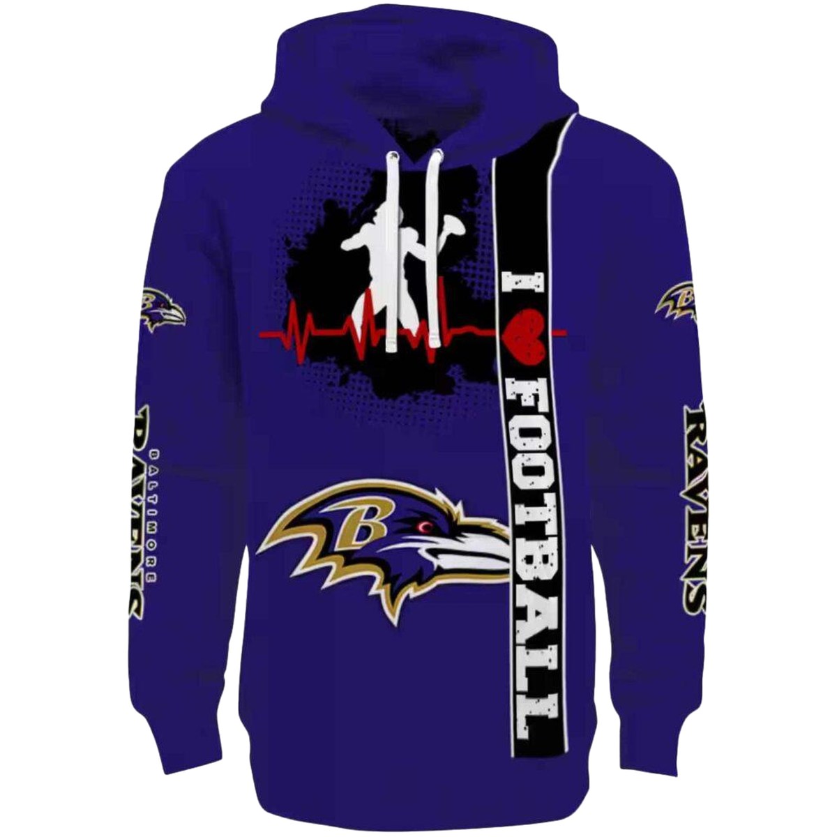 Baltimore Ravens Football Heartbeat Purple AOP Hoodie