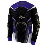 Elevate your streetwear game with our Baltimore Ravens Futuristic Pattern Purple Black AOP Sweatshirt. Perfect for die-hard fans and fashion-forward individuals alike, this sweatshirt is designed for casual outings, workouts, or lounging at home while showcasing your love for the team in a unique, modern style. Its vibrant all-over print and relaxed fit make it a standout piece in any wardrobe.