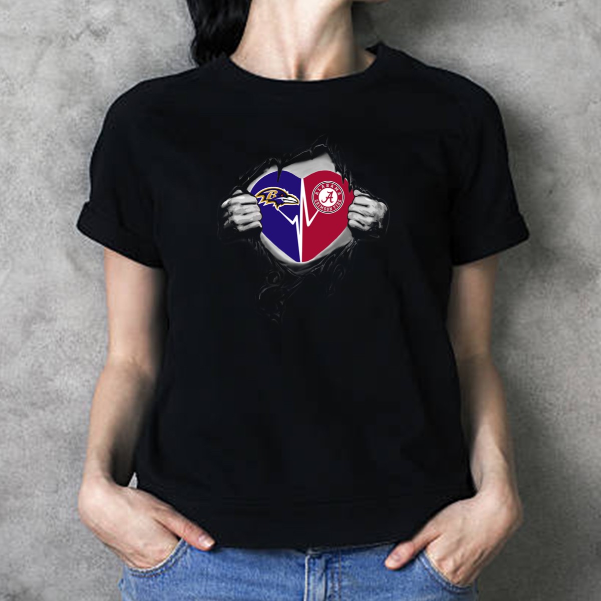 Baltimore Ravens Heartbeat Alabama Crimson Tide Fan Heart T-Shirt