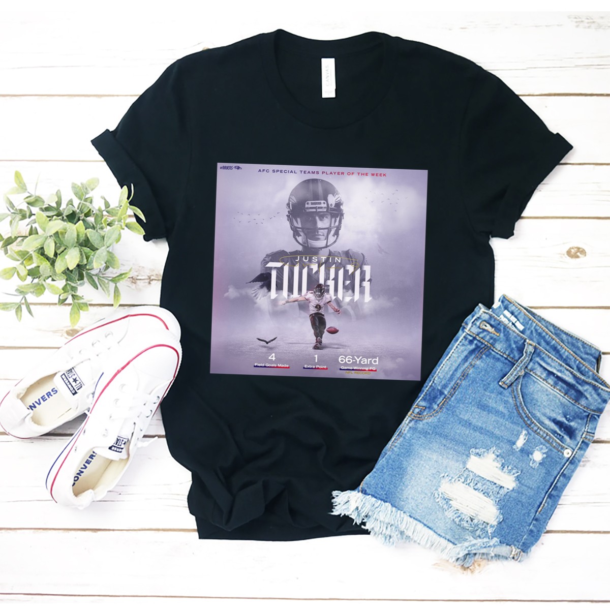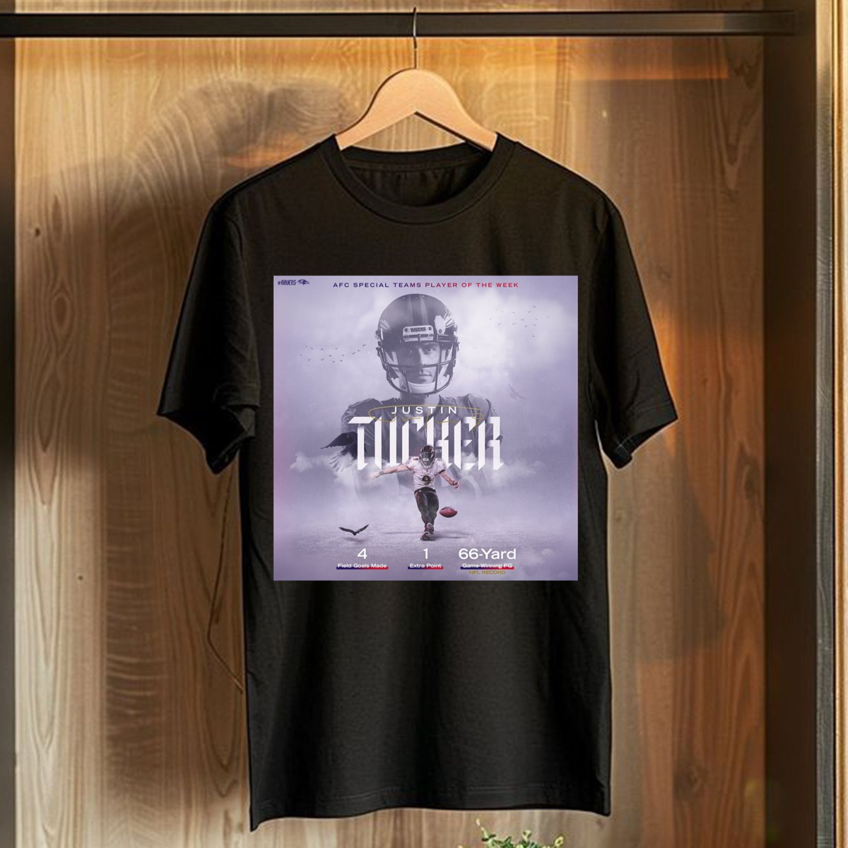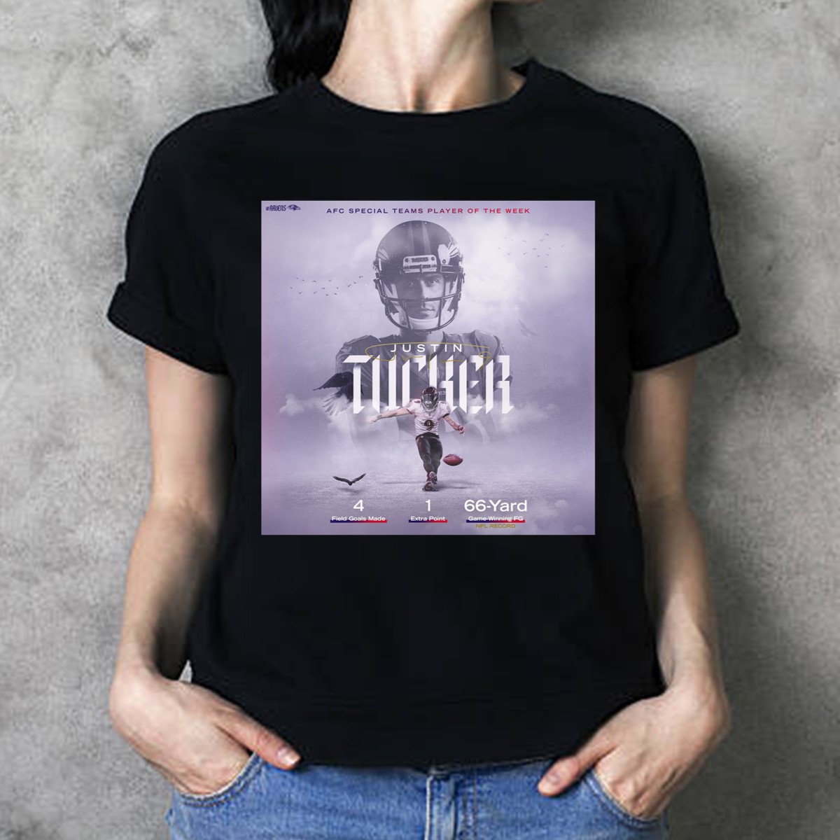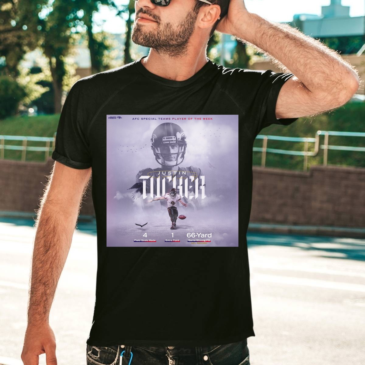 Show your love for the Baltimore Ravens and celebrate the iconic Justin Tucker with this fan-made graphic T-shirt! Perfect for die-hard football fans, this shirt is ideal for casual outings, themed events, or just lounging around while you cheer on your favorite team. Crafted with a unique design printed in the USA, this T-shirt combines comfort and style, making it a must-have for any Ravens supporter.