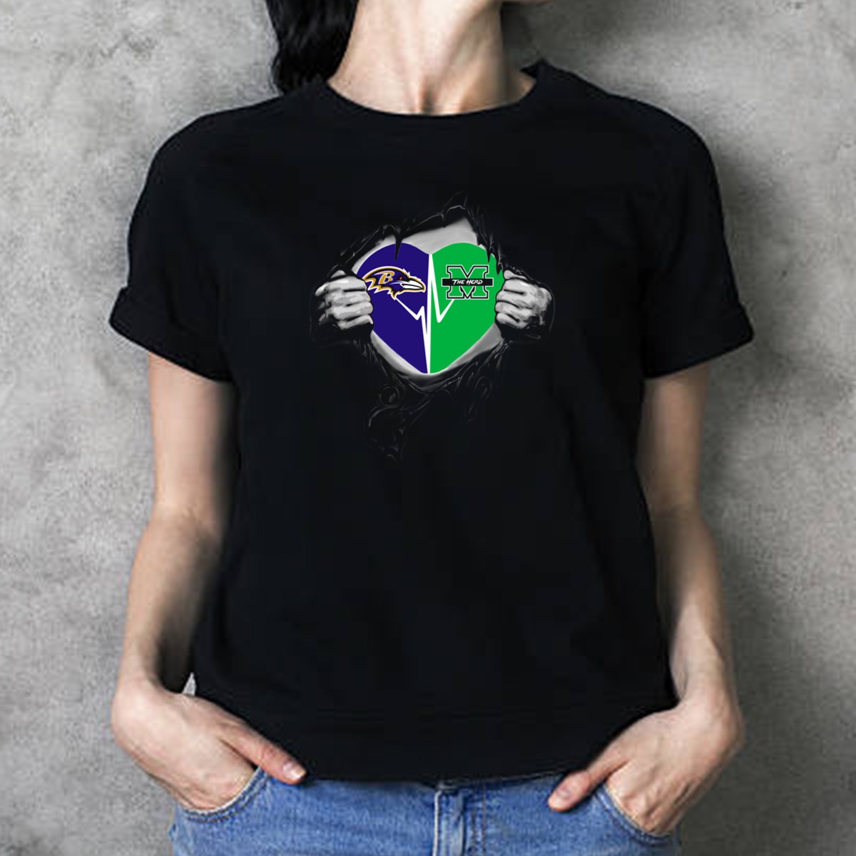 Baltimore Ravens Marshall Thundering Herd Heart T-Shirt