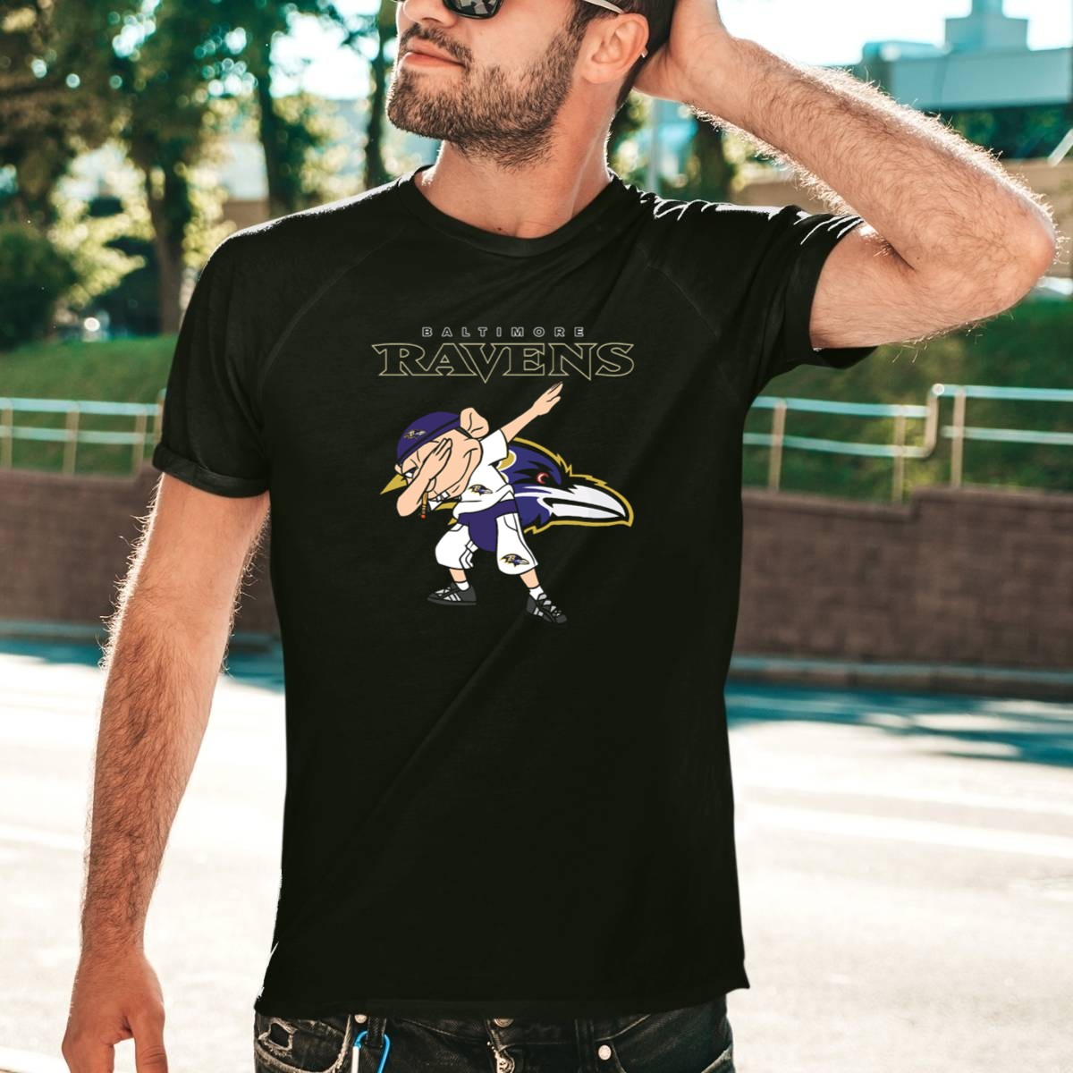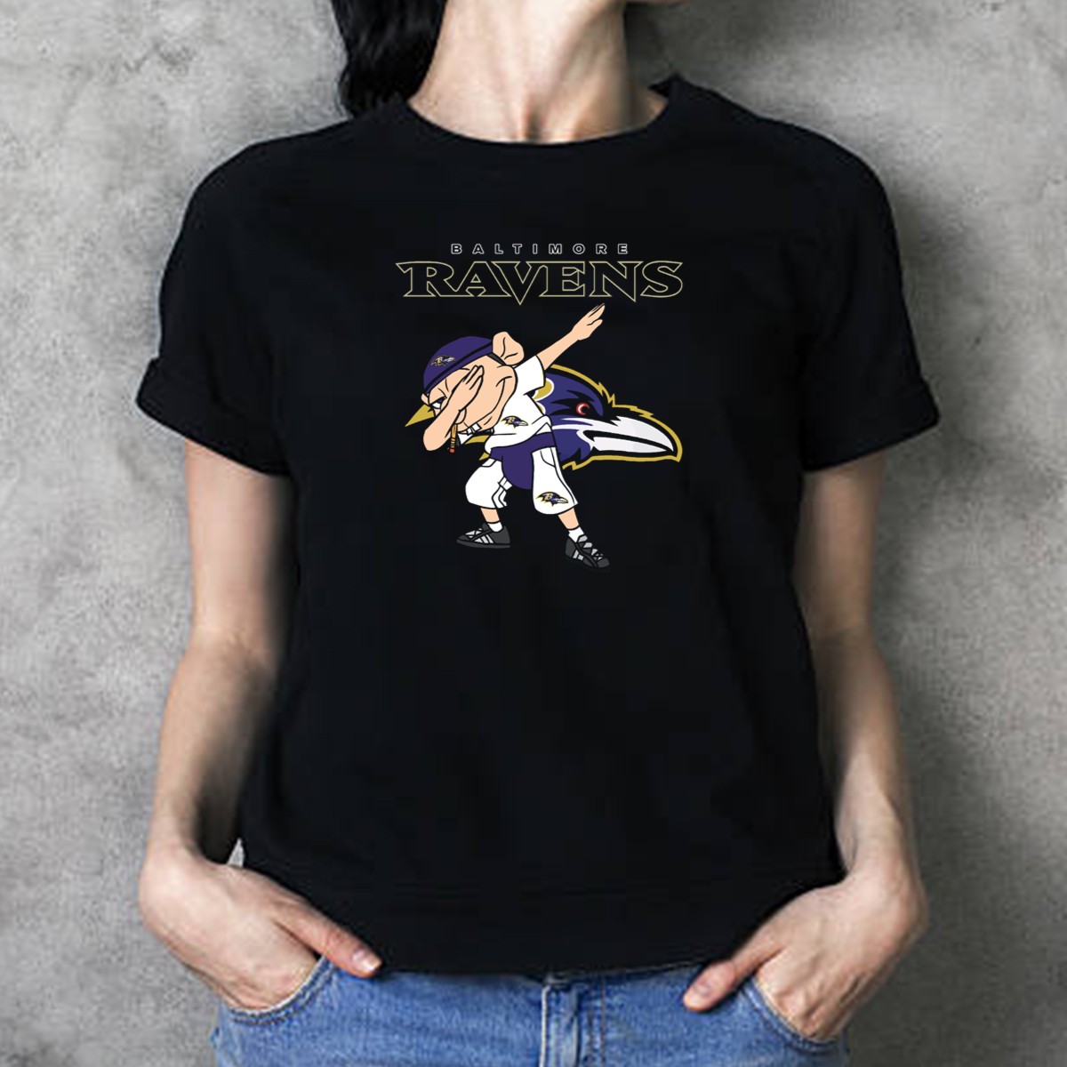 Show your team spirit with our Baltimore Ravens Mascot Dabbing Football Fan Gear T-Shirt! Perfect for passionate fans and casual wearers alike, this shirt is designed for those who love to celebrate their favorite team in style. Whether you’re at the game, hosting a watch party, or just out and about, this fan-made design printed in the USA is sure to turn heads and spark conversations. Embrace the excitement of the season with a shirt that combines comfort and team pride!