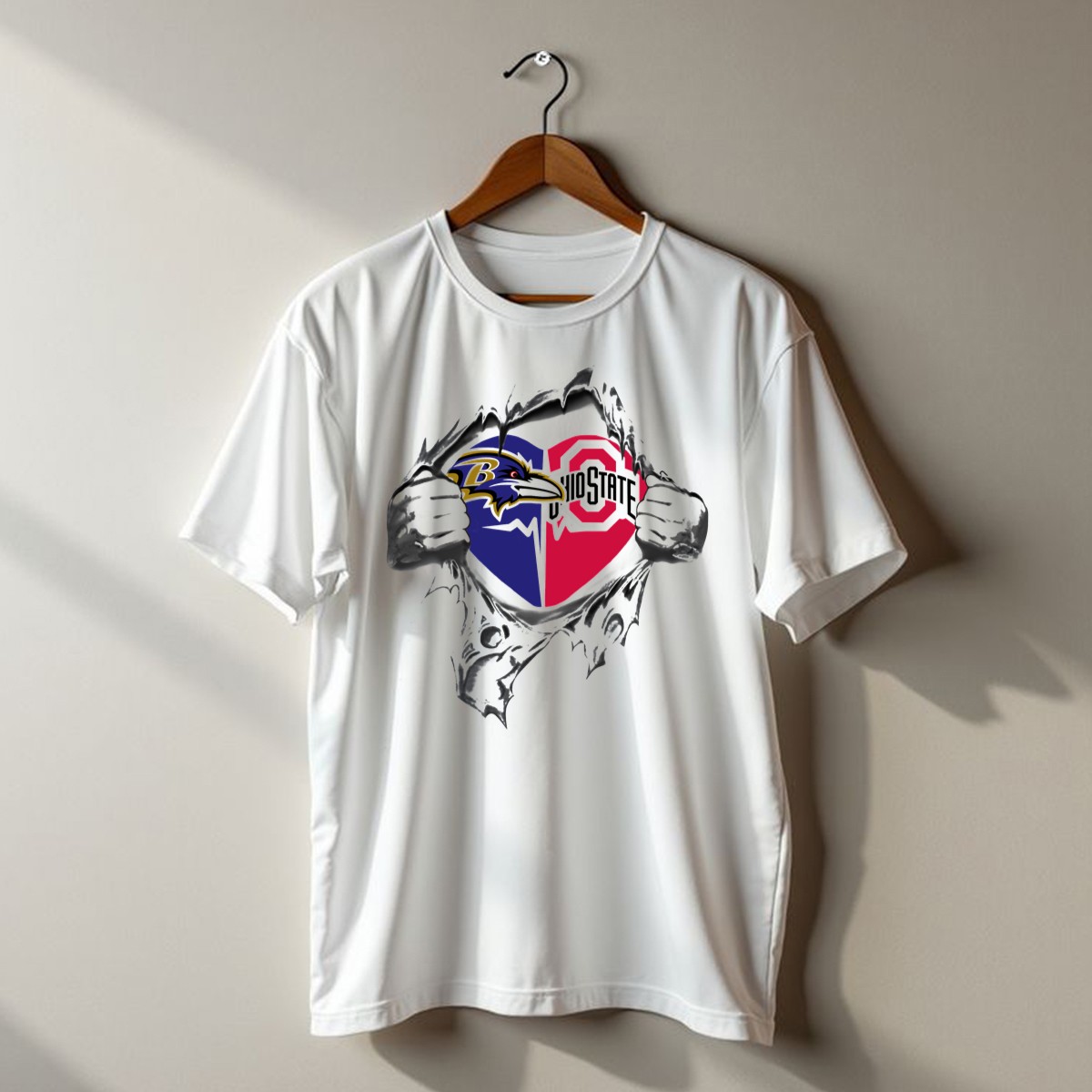 Baltimore Ravens Ohio State Buckeyes Dual Team Logo Heart T-Shirt