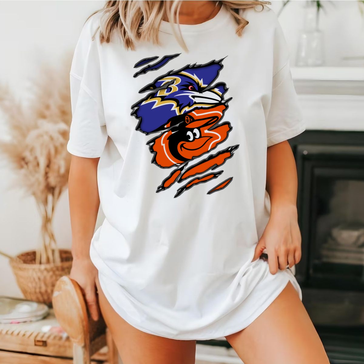 Show your love for Baltimore sports with this unique fan-made mashup T-shirt featuring the iconic logos of the Baltimore Ravens and Orioles. Perfect for dedicated fans and casual wearers alike, this shirt is ideal for game days, themed events, or everyday outings. Crafted with comfort in mind, it combines style and passion for an unbeatable look that celebrates two beloved teams, making it a must-have addition to any sports enthusiast’s wardrobe.