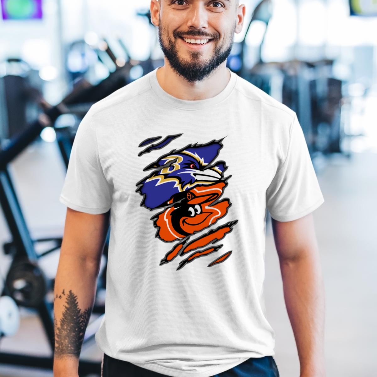 Show off your team spirit with our Baltimore Ravens Orioles Logos Ripped T-Shirt, a must-have for any die-hard fan! This trendy, fan-made design combines the iconic logos of the Baltimore Ravens and Orioles, making it perfect for casual outings, themed events, or just lounging at home. Crafted for comfort and style, this shirt is ideal for all-season wear, ensuring you stay cool and stylish while cheering for your favorite teams.