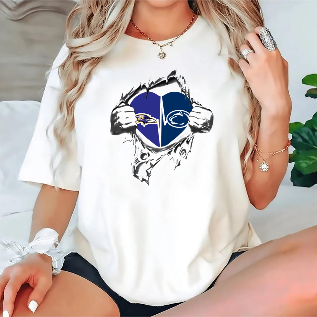 Show your love for the Baltimore Ravens and Penn State with our exclusive Heart Rip T-Shirt, designed for fans who wear their team pride on their sleeves! Perfect for casual outings, game days, or themed events, this shirt combines comfort and style, making it a must-have addition to any fan’s wardrobe. The unique fan-made design is printed in the USA, ensuring you stand out in the crowd while supporting your favorite teams.