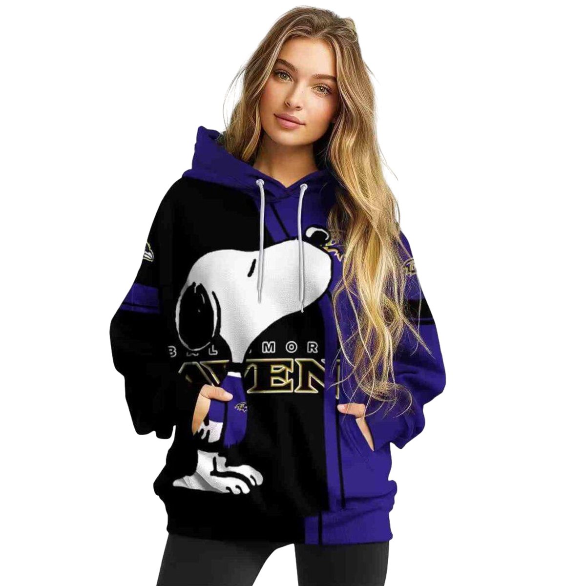 Baltimore Ravens Playful Snoopy Purple AOP Hoodie
