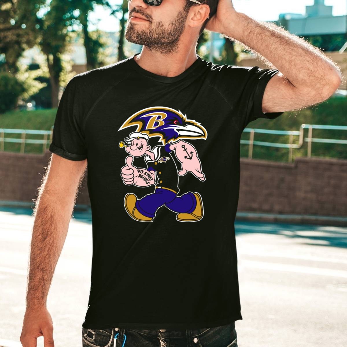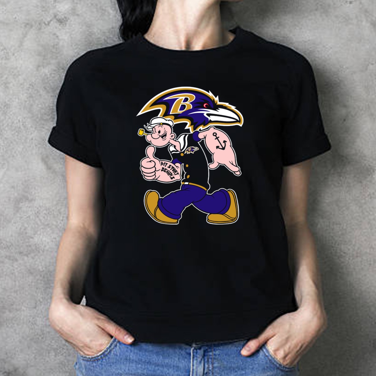 Show off your love for the Baltimore Ravens in a fun and unique way with our Popeye Cartoon Character NFL Crossover T-Shirt! This fan-made design captures the spirit of your favorite team while adding a playful twist that’s perfect for die-hard fans and casual wearers alike. Ideal for game days, themed events, or just lounging around, this shirt is a great addition to any Ravens supporter’s wardrobe. With its classic fit and soft, breathable material, you’ll feel comfortable while showcasing your team pride.