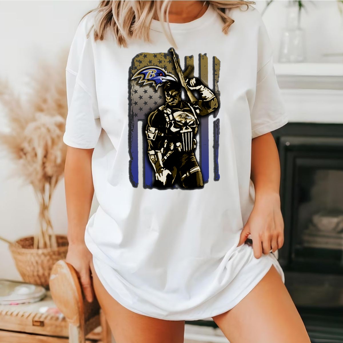 Baltimore Ravens Punisher Soldier Usa Flag T-Shirt