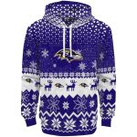 Baltimore Ravens Reindeer Motif Purple AOP Hoodie
