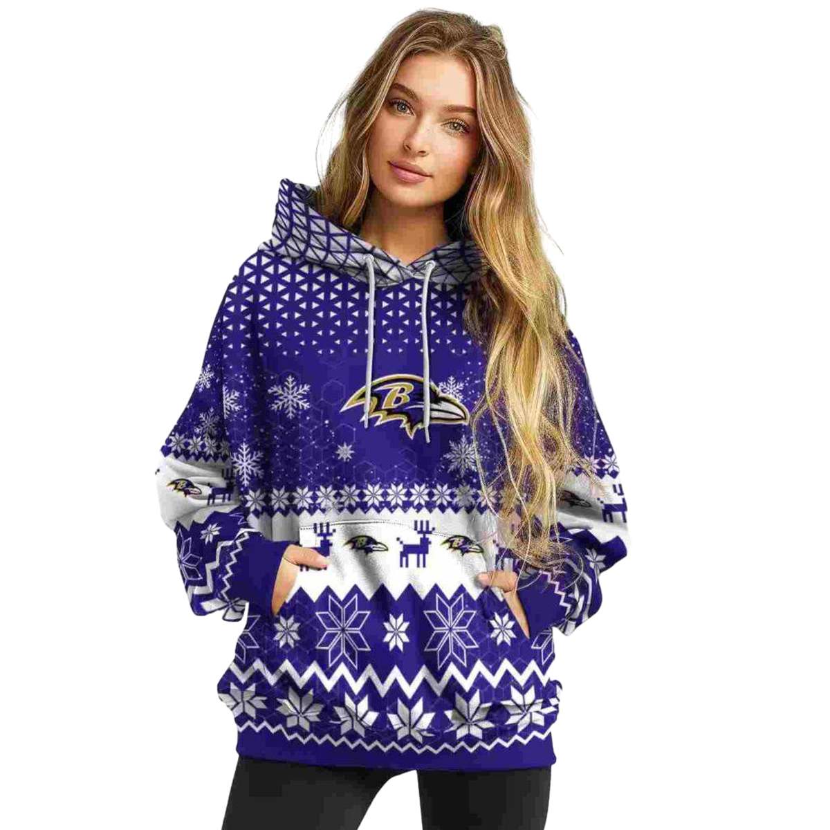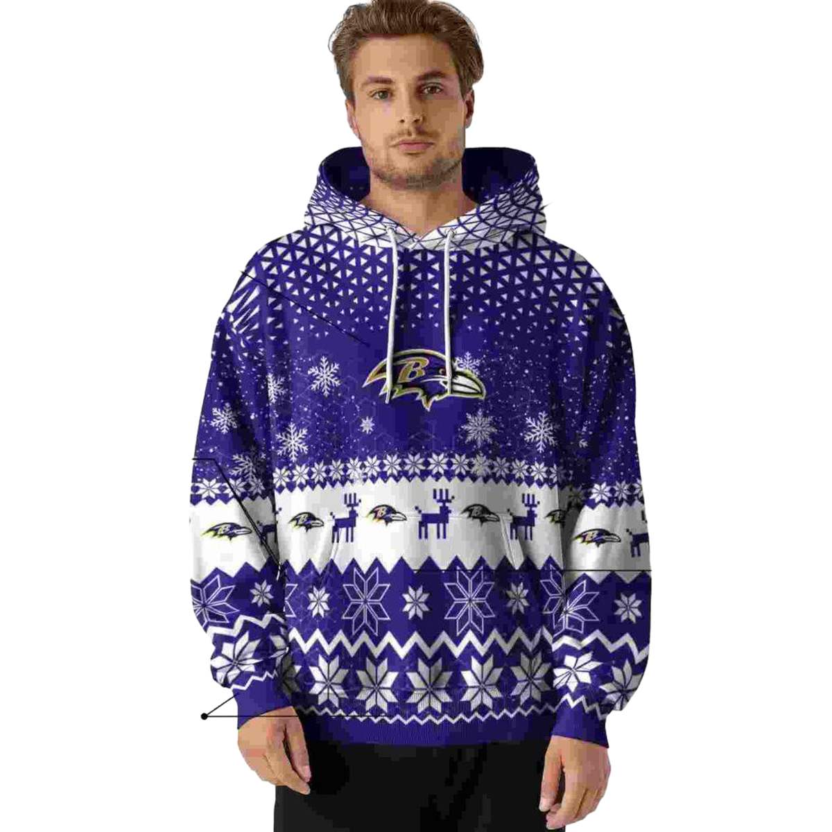 Embrace the festive spirit with our Baltimore Ravens Reindeer Motif Purple AOP Hoodie, designed for fans who want to showcase their team pride in a stylish and playful way. Perfect for daily wear or casual outdoor activities during the winter months, this hoodie is a unique blend of comfort and team spirit, making it an essential addition to any Ravens fan’s wardrobe.