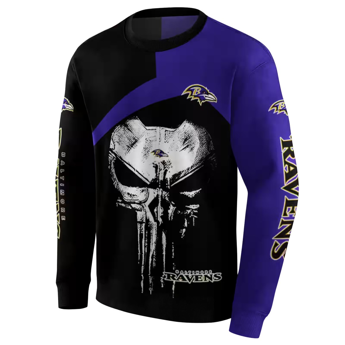 Baltimore Ravens Skull Punisher Black AOP Sweatshirt
