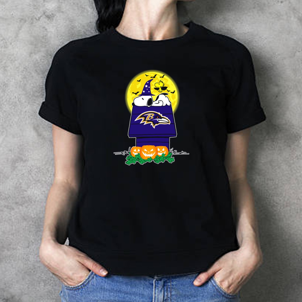 Baltimore Ravens Snoopy Halloween Moon Pumpkins T-Shirt