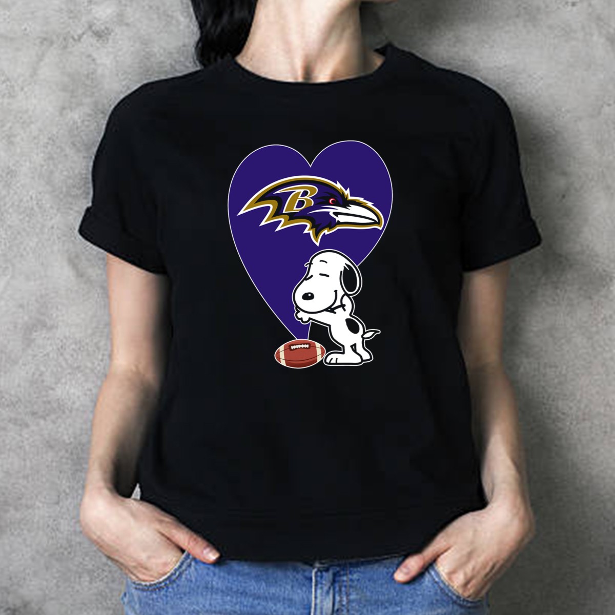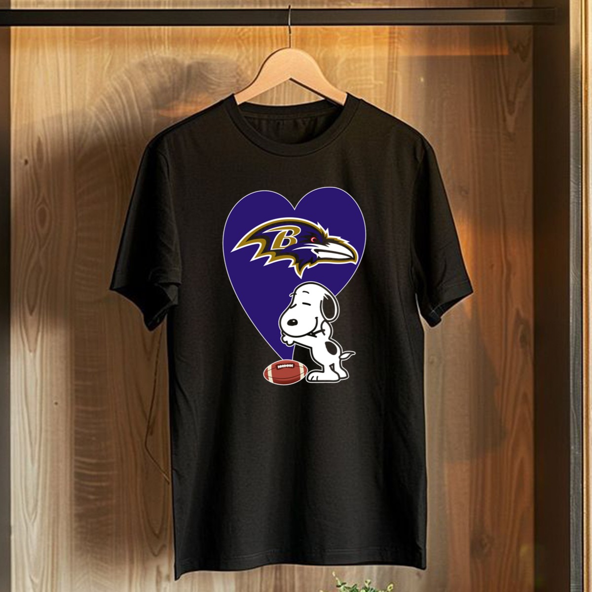 Baltimore Ravens Snoopy Heart Football Hug T-Shirt
