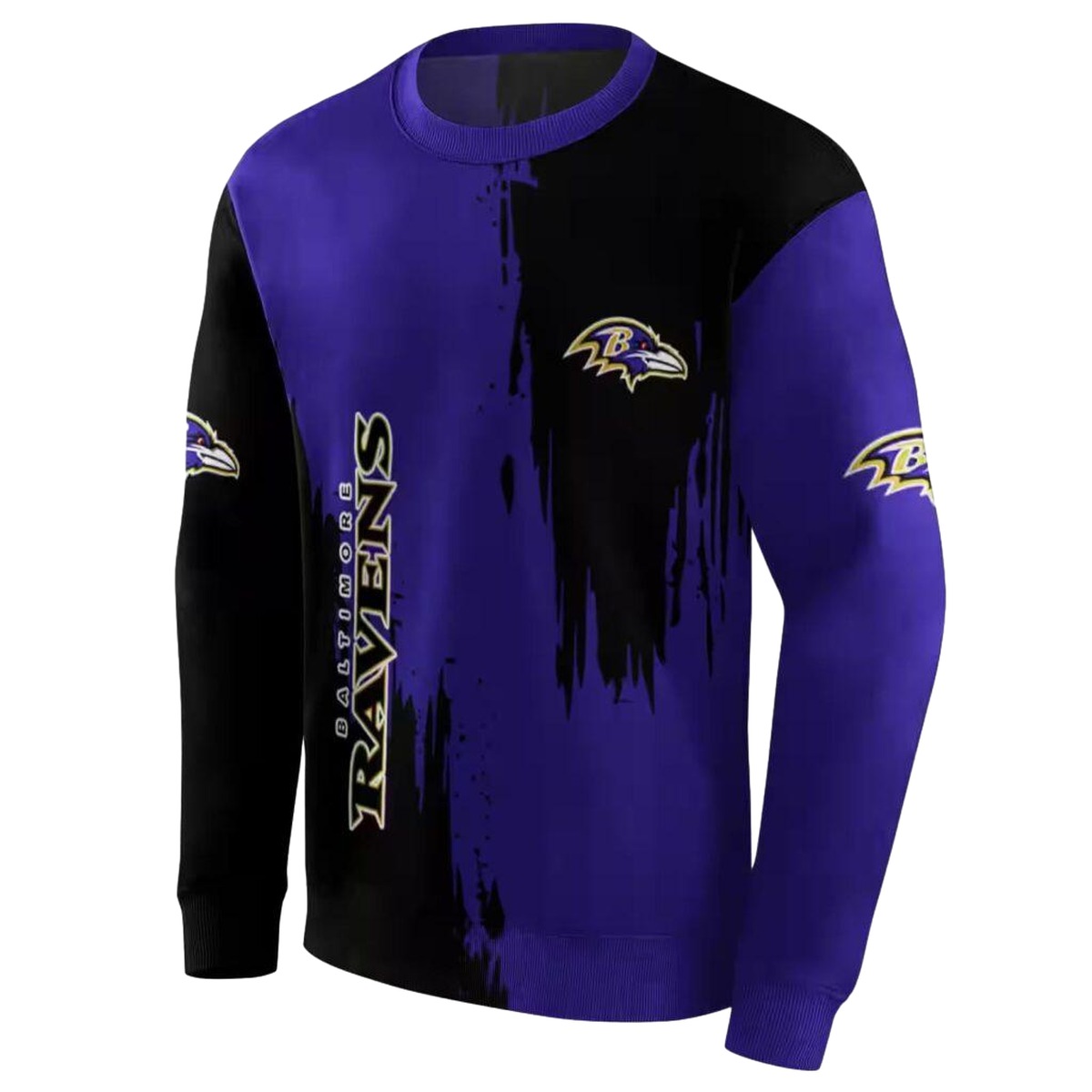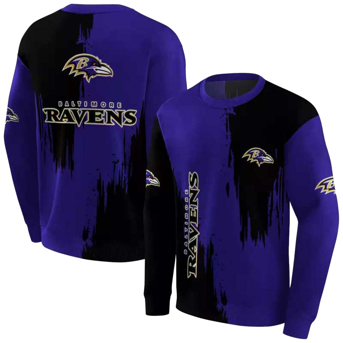 Baltimore Ravens Splatter Effect Purple Black AOP Sweatshirt