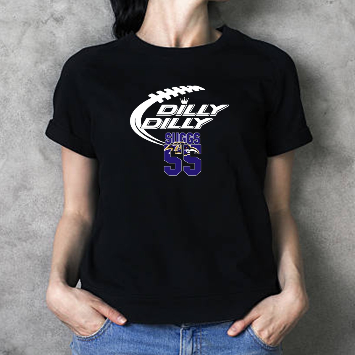 Show your unwavering support for the Baltimore Ravens with this Suggs Dilly Dilly 55 Game Jersey T-Shirt! Perfect for die-hard fans and casual wearers alike, this shirt boasts a playful design that celebrates your favorite player while ensuring you stay comfortable and stylish. Whether you’re at the game, hosting a themed event, or just hanging out with friends, this shirt is a must-have for any Ravens enthusiast looking to showcase their team spirit.