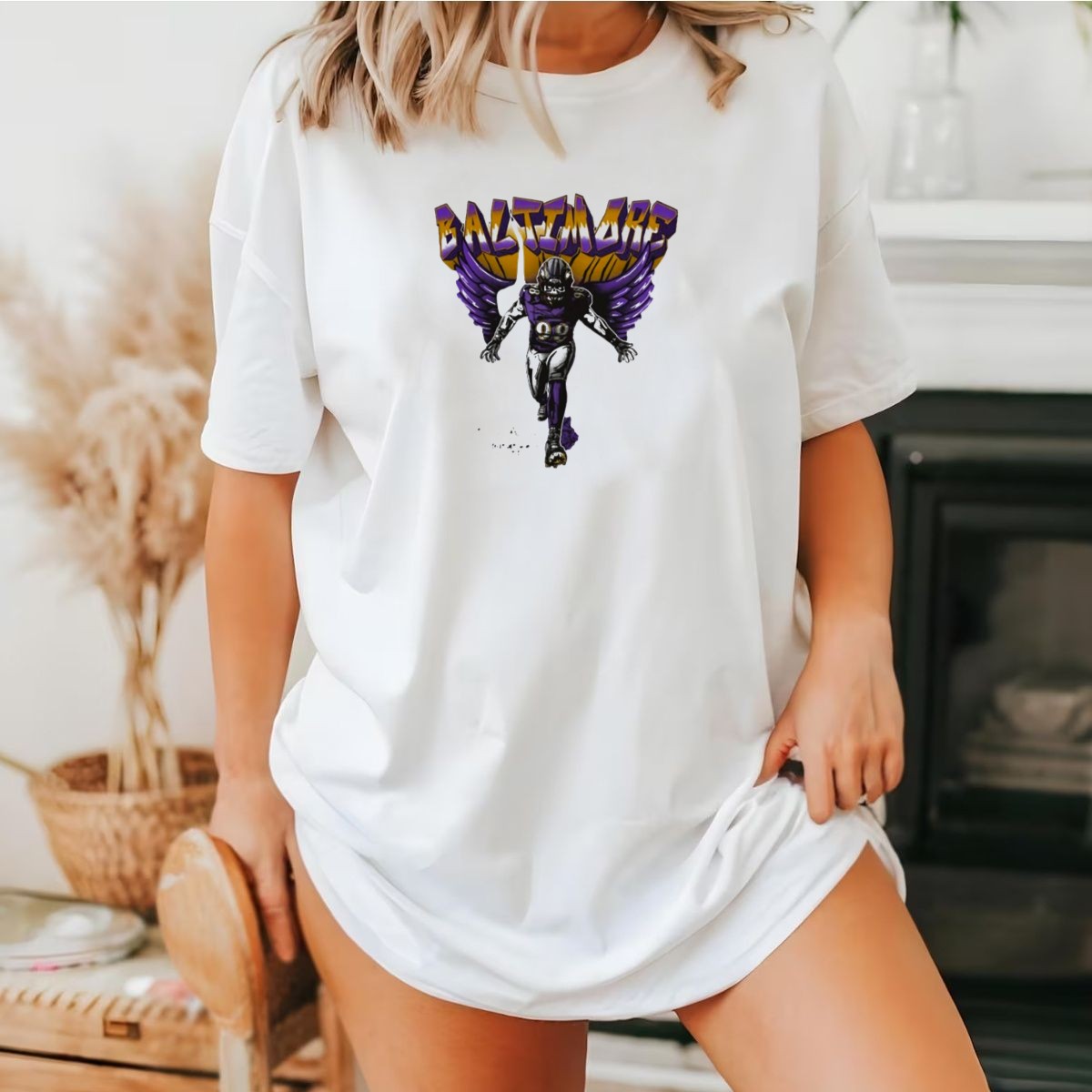 Show your unwavering support for the Baltimore Ravens with our Superbowl Champ Football Player T-Shirt, expertly designed for true fans. This shirt captures the spirit of victory and camaraderie, making it perfect for game days, casual outings, or themed events. The unique fan-made design features the iconic Ravens wings, showcasing your team pride while ensuring comfort and style in any season.
