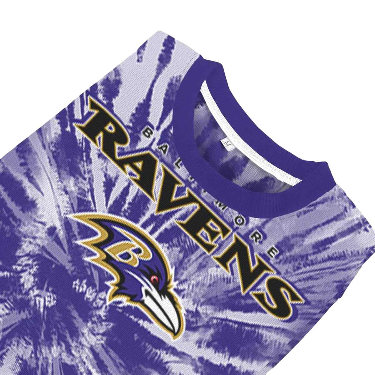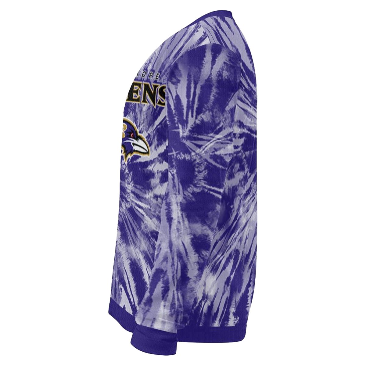 Elevate your streetwear game with our Baltimore Ravens Tie Dye Purple Pattern AOP Sweatshirt. Perfect for fans and fashion enthusiasts alike, this unique piece is designed for casual outings, lounging at home, or even hitting the gym. With its eye-catching all-over print, it effortlessly blends comfort and style, making it an essential addition to any wardrobe.