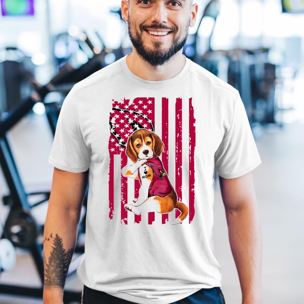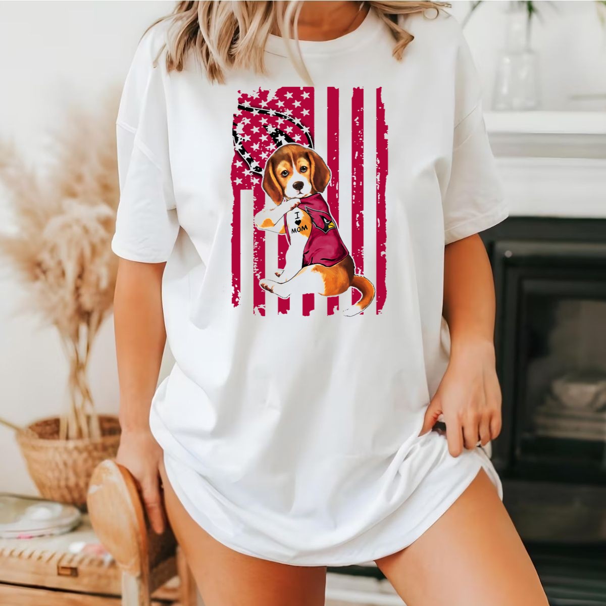 Show off your love for beagles and your team spirit with our Beagle with Arizona Cardinals Tattoo and American Flag Background T-Shirt! Perfect for dog lovers and sports fans alike, this graphic tee is designed for casual outings, themed events, or just a laid-back day at home. Made for those who appreciate unique designs, this shirt is a true conversation starter and is proudly printed in the USA.