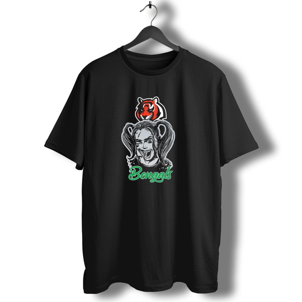 Show your fierce loyalty as a Bengals fan with this eye-catching Harley Quinn and Cincinnati Bengals T-shirt! Perfect for game days, themed events, or casual outings, this shirt combines a playful design with the spirit of your favorite team. Crafted for comfort and style, it’s a must-have for fans who want to stand out and celebrate their passion.