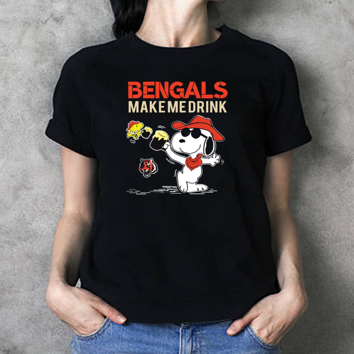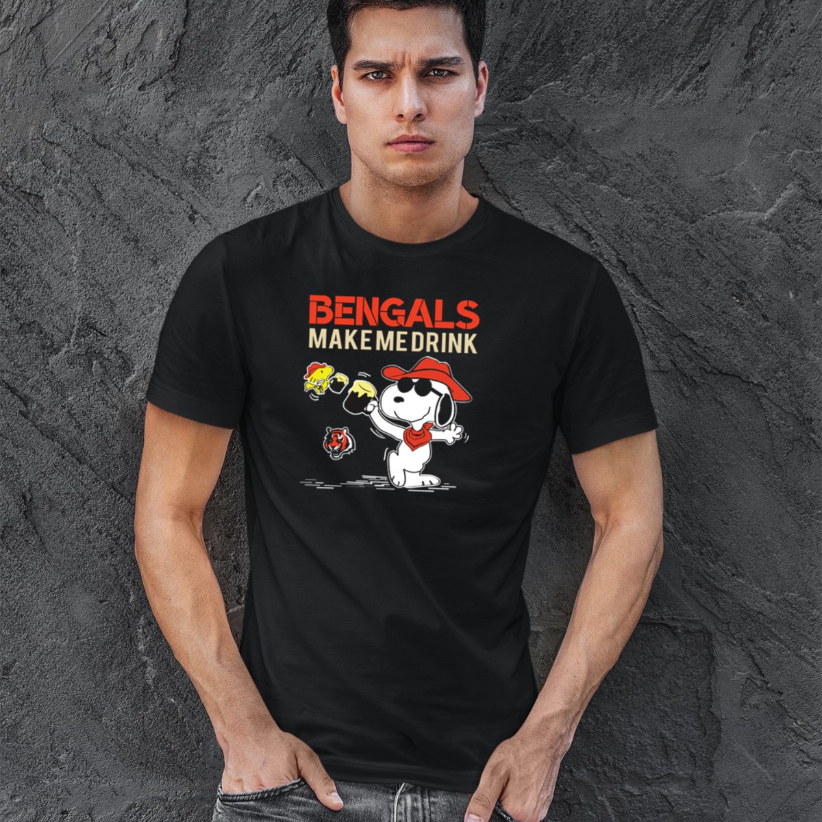 Show off your team spirit with our Bengals Make Me Drink Snoopy Cincinnati Bengals T-Shirt! Perfect for die-hard fans and casual supporters alike, this fun and unique design combines your love for the Bengals with a playful twist featuring Snoopy. Ideal for game days, themed events, or just lounging around, this shirt is made to keep you comfortable while you cheer for your favorite team all season long.