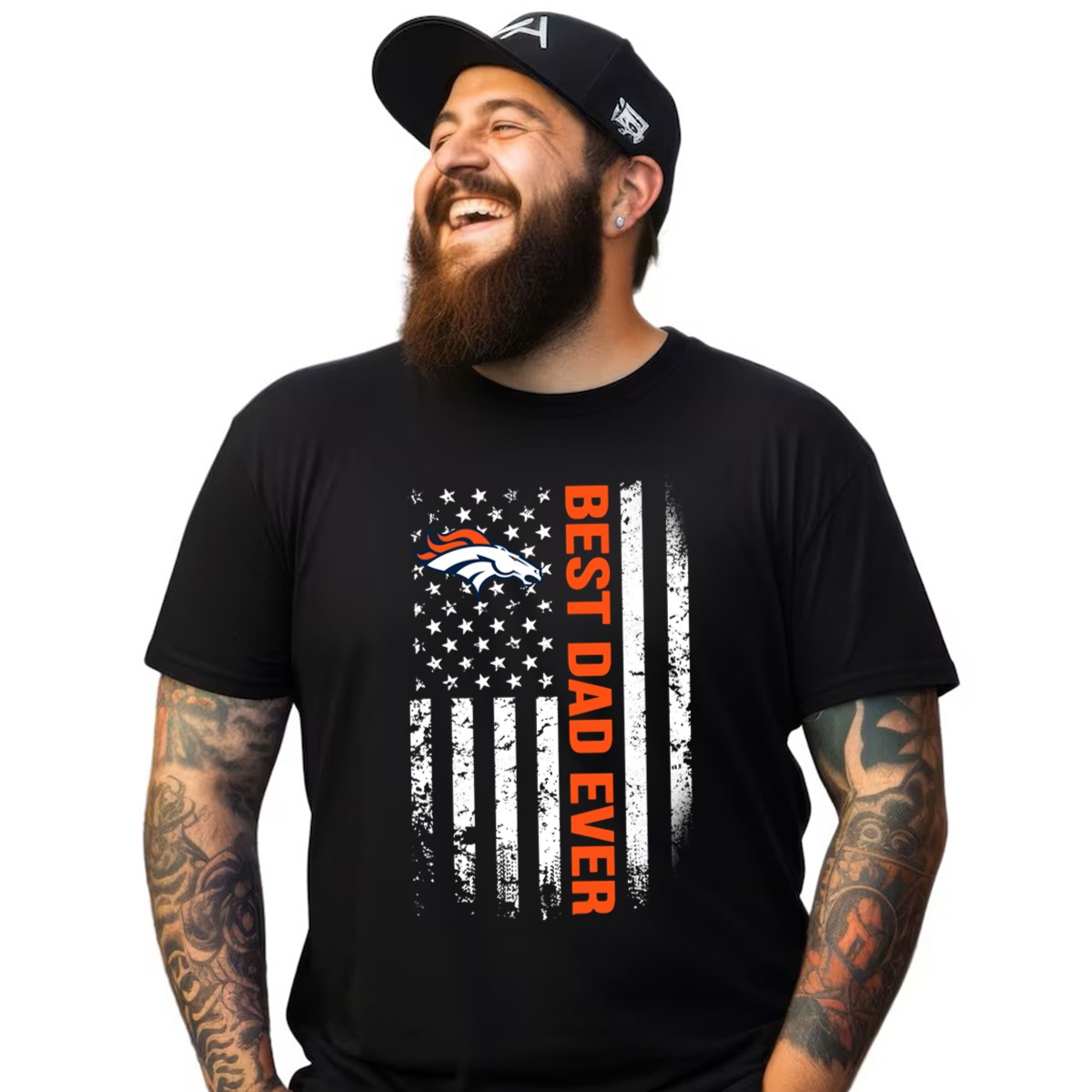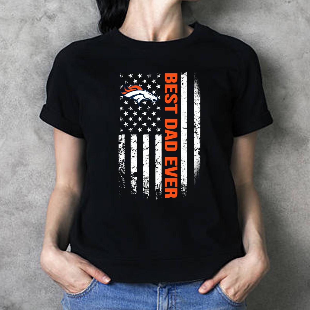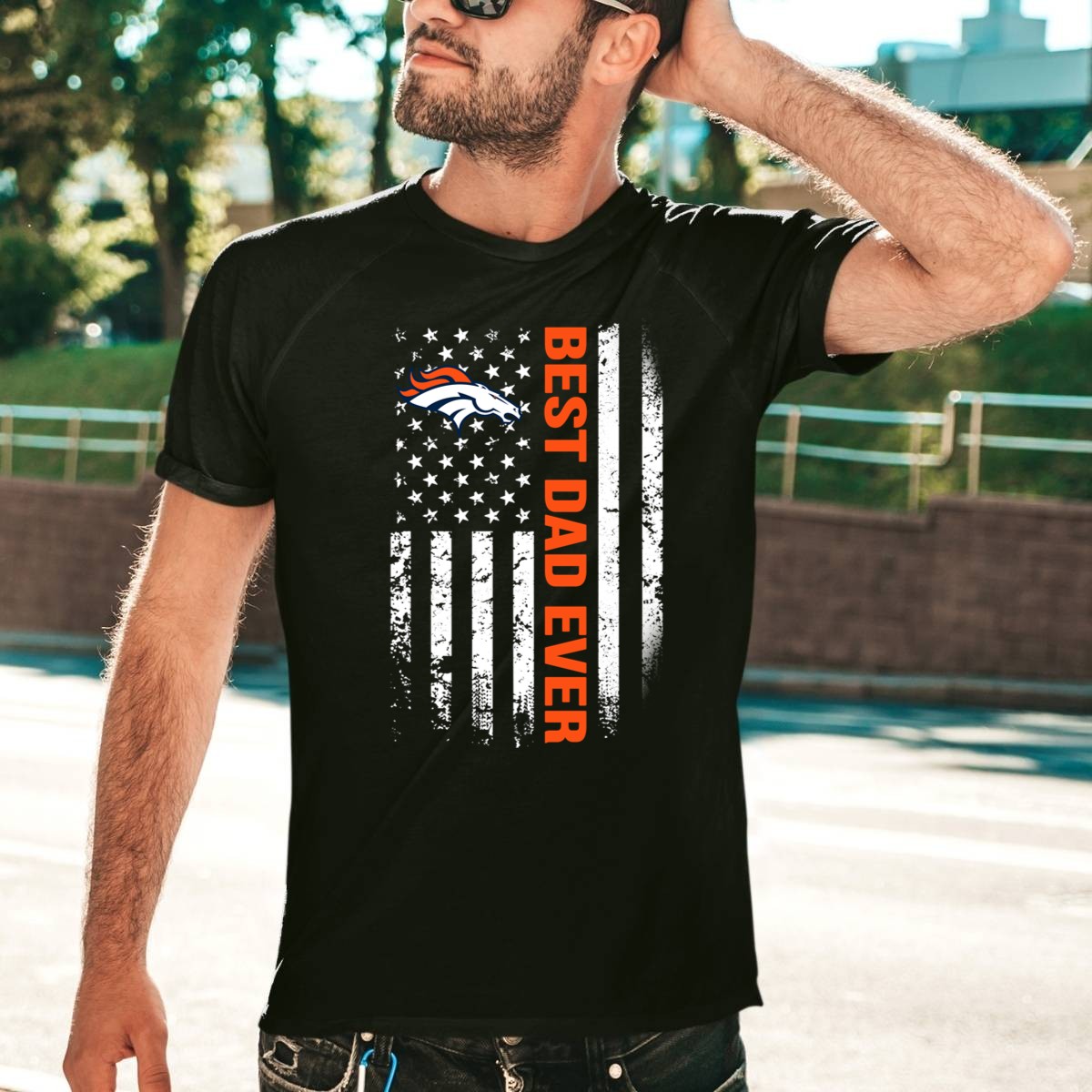 Show your pride as the ultimate Denver Broncos dad with this eye-catching American flag graphic T-shirt! Perfect for game days, family gatherings, or casual outings, this shirt combines comfort with a bold design that celebrates your love for the team. Made for fans who want to stand out while supporting their favorite football squad, this shirt is a must-have for every devoted Broncos supporter.