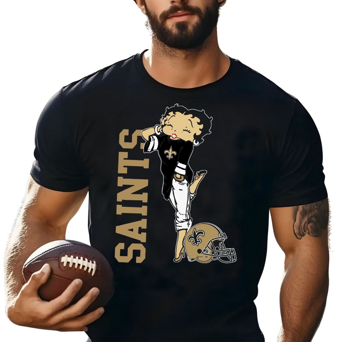 Show off your love for both Betty Boop and the New Orleans Saints with this unique fan-made graphic T-shirt! Perfect for die-hard fans or anyone looking to add a touch of playful charm to their casual wardrobe, this shirt is ideal for game days, themed events, or just hanging out with friends. With its classic fit and fun design, you’ll be turning heads and sparking conversations wherever you go!