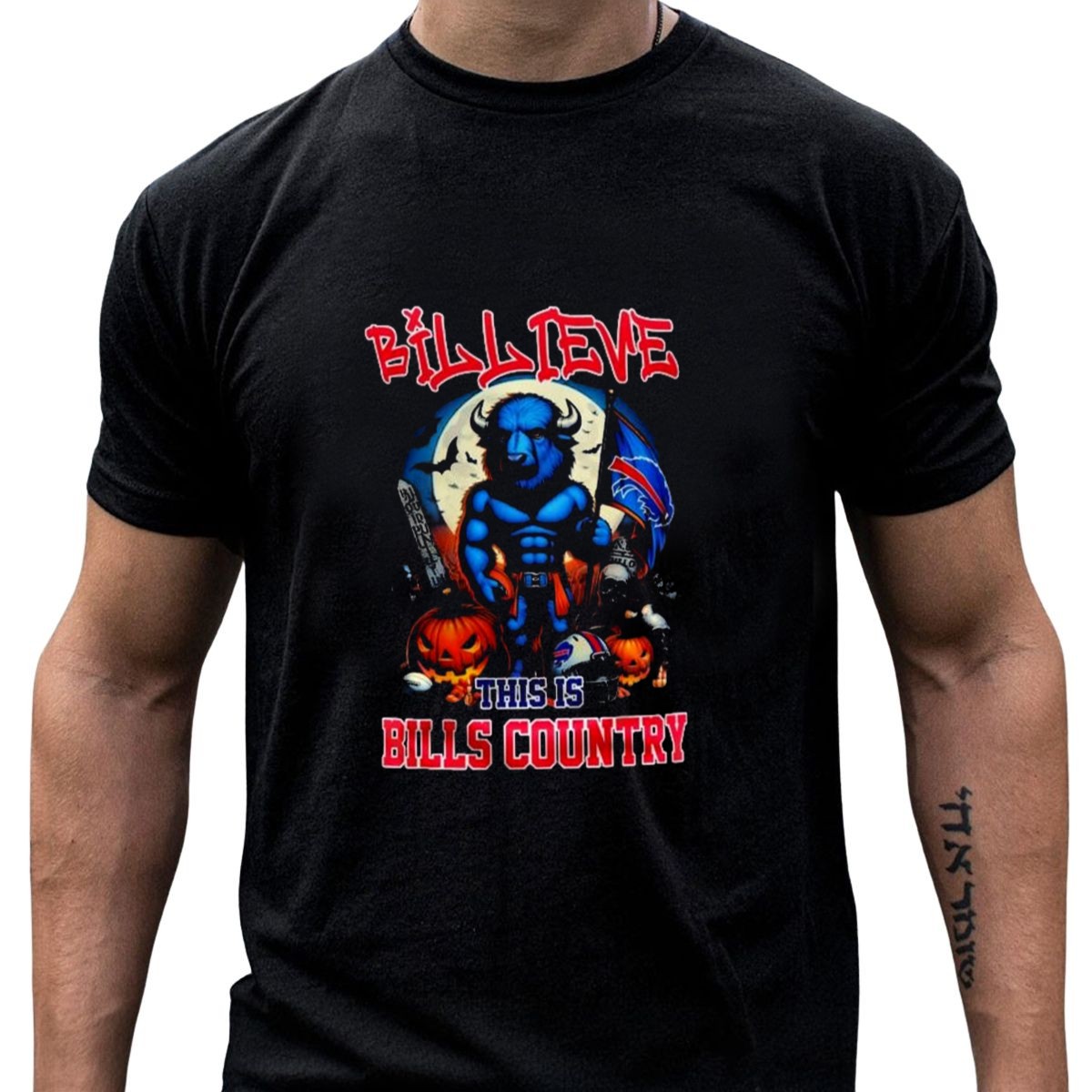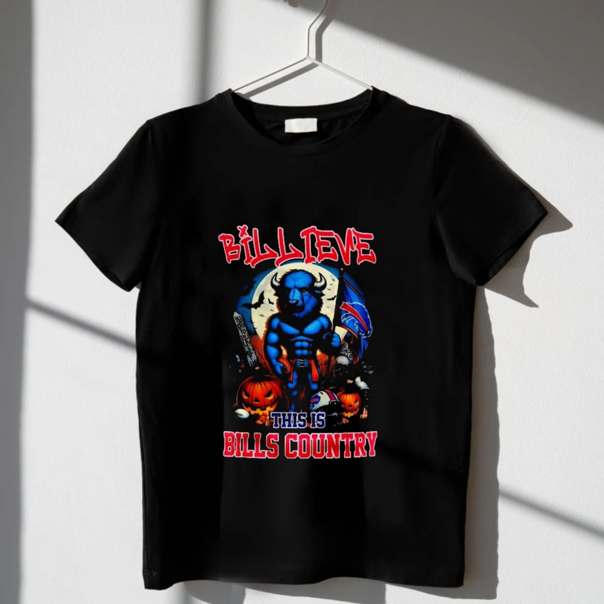 Celebrate your love for the Buffalo Bills this Halloween season with our fan-made “Billeve This Is Bills Country” graphic T-shirt! Perfect for die-hard fans and casual wear, this shirt combines team spirit with festive fun, making it an ideal choice for game days, themed events, or just hanging out with friends. Crafted for comfort and style, this classic fit tee is a must-have for any true Bills supporter.