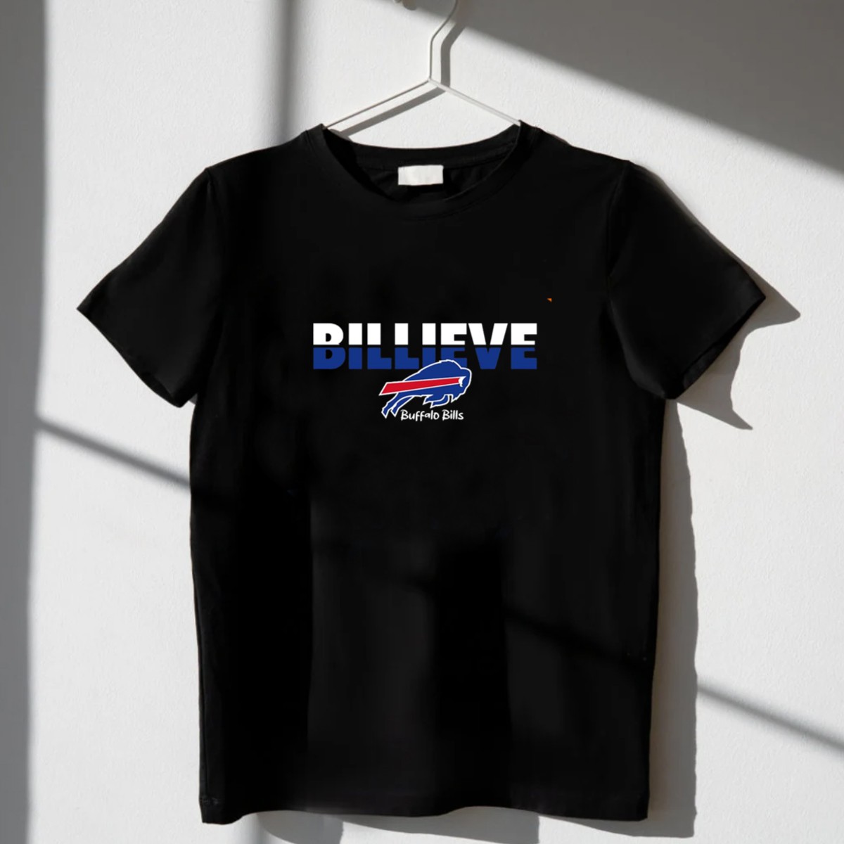 Show your unwavering support for the Buffalo Bills with the Billieve Buffalo Bills Football Fan Logo T-Shirt! Perfect for passionate fans, this graphic tee is designed for casual wear, themed events, or daily outings. Crafted with a fan-made design printed right here in the USA, it combines comfort and style, making it a must-have for any die-hard Bills supporter.