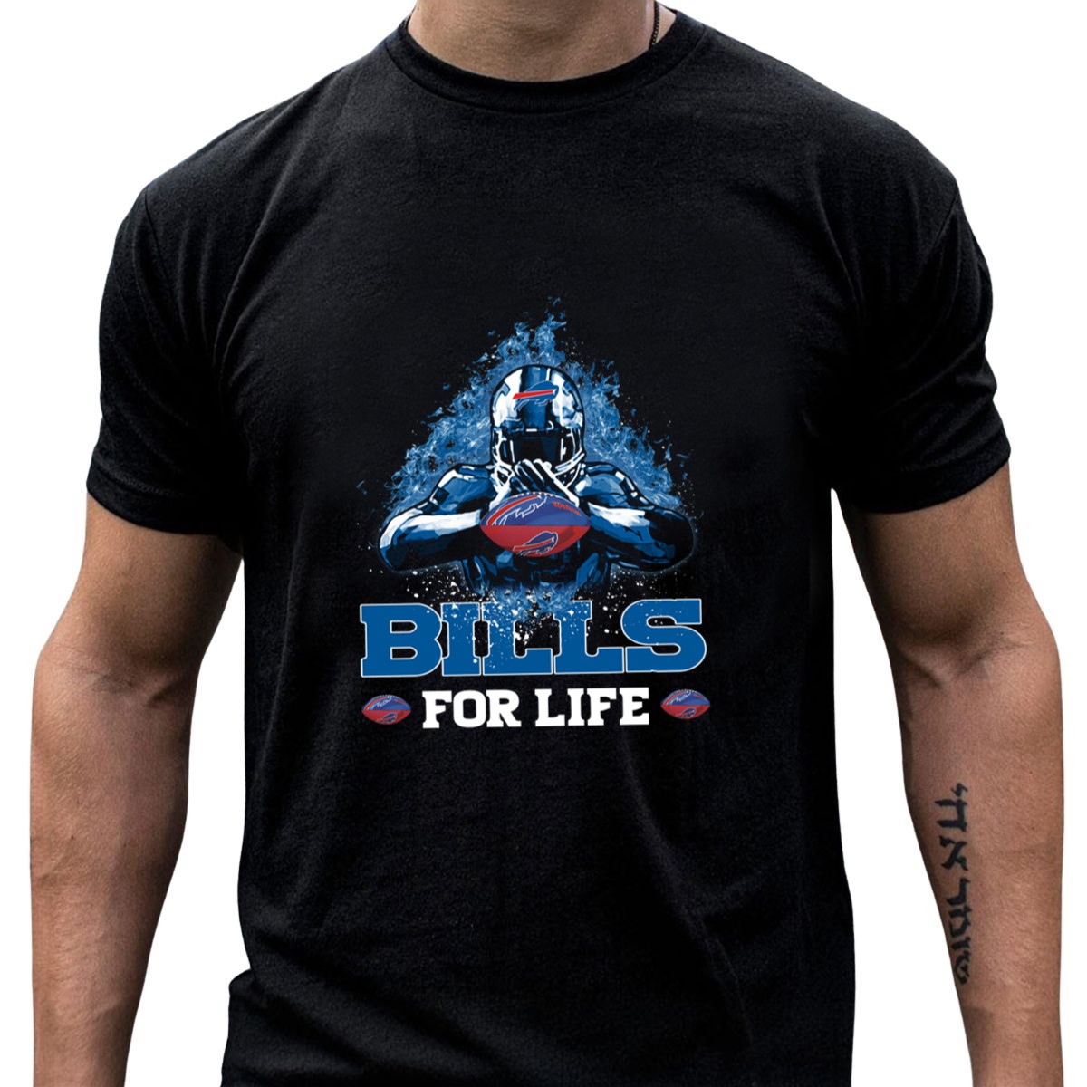 Show your unwavering support for the Buffalo Bills with our “Bills For Life” graphic printed T-shirt! Perfect for die-hard fans, this stylish and comfortable tee is ideal for casual outings, themed events, or just lounging at home while cheering for your favorite team. Made with a fan-made design printed right here in the USA, it’s a unique addition to any Bills enthusiast’s wardrobe that showcases your loyalty and passion for the game.