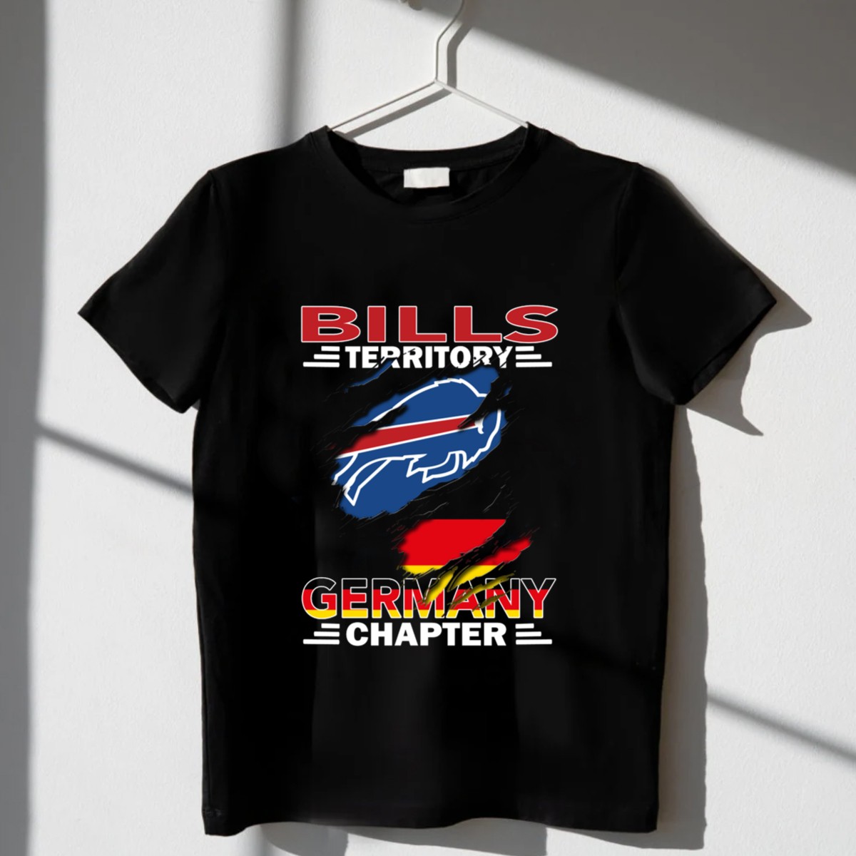 Show your unwavering support for the Buffalo Bills with this exclusive fan-made T-shirt featuring the Bills Territory Germany Chapter logo alongside the iconic German flag. Perfect for die-hard fans in Germany or anyone celebrating their love for football, this comfortable and stylish tee is ideal for casual wear, themed events, or simply cheering on your favorite team from anywhere. Crafted for comfort and designed to stand out, this shirt is a must-have for every Bills enthusiast.