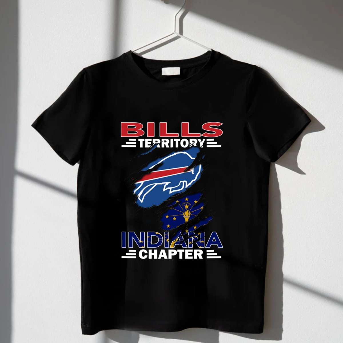 Show your support for the Buffalo Bills with our Bills Territory Indiana Chapter T-Shirt, a must-have for every fan in Indiana! This fan-made design celebrates your team pride while offering a stylish and comfortable fit for casual outings, themed events, or everyday wear. Made for true Bills enthusiasts, this shirt is perfect for game day gatherings or simply flaunting your fandom around town. Printed in the USA, it combines quality with a bold statement.