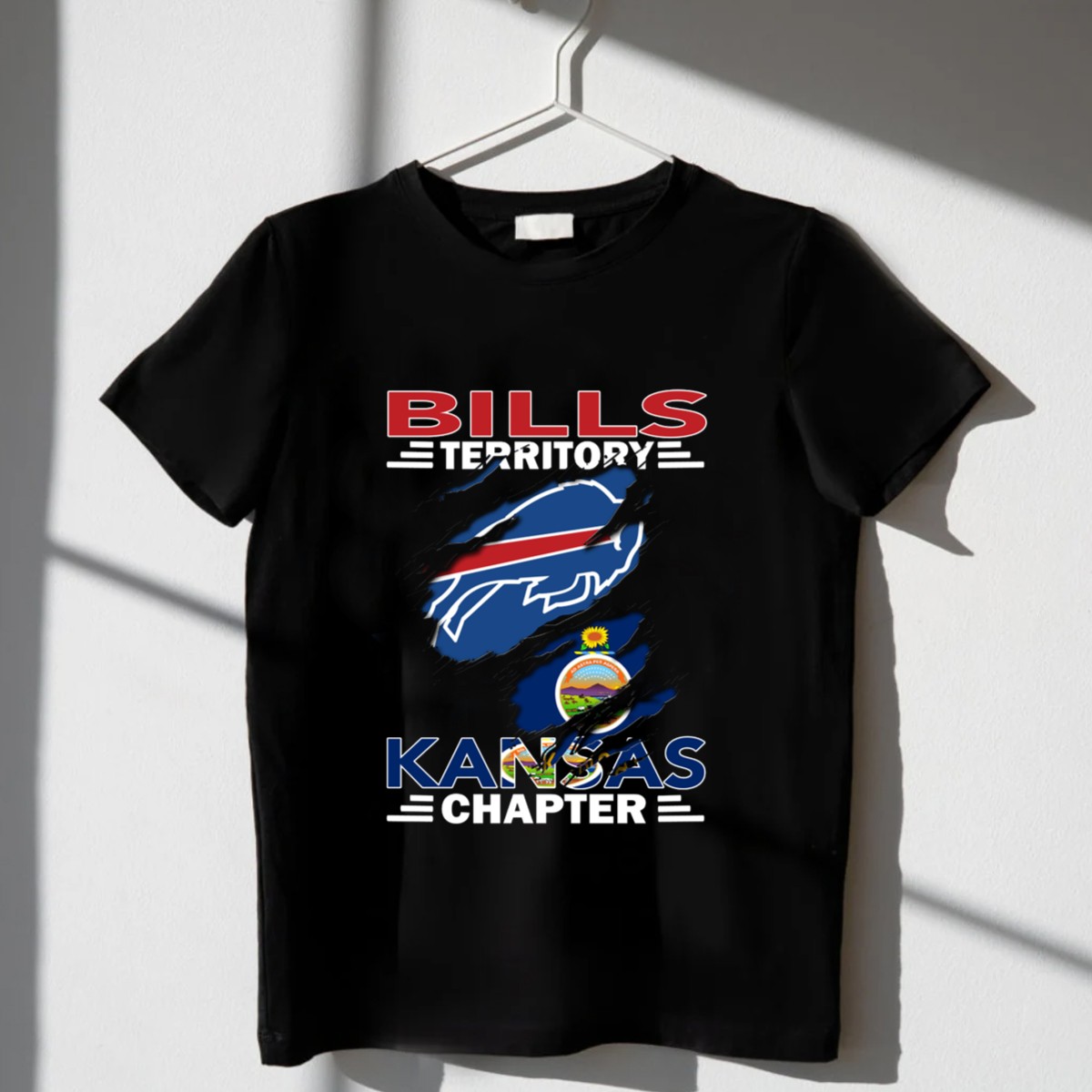 Show off your pride for the Buffalo Bills with this Bills Territory Kansas Chapter T-shirt! Perfect for die-hard fans and casual wearers alike, this T-shirt features a striking design that combines the iconic Buffalo Bills logo with a nod to the Kansas flag. Ideal for game days, themed events, or simply lounging around, this shirt is a must-have for anyone looking to express their team spirit in a stylish and comfortable way.