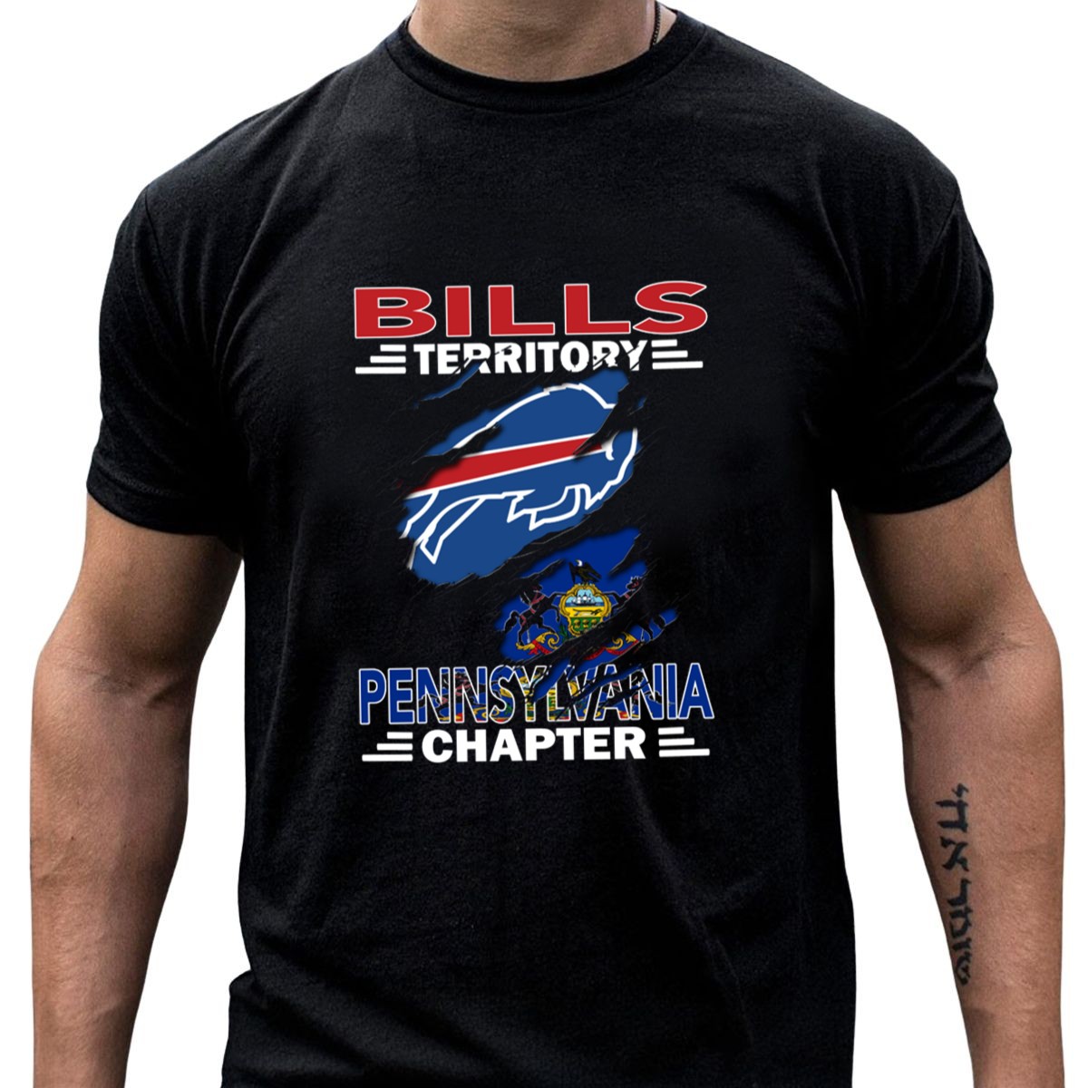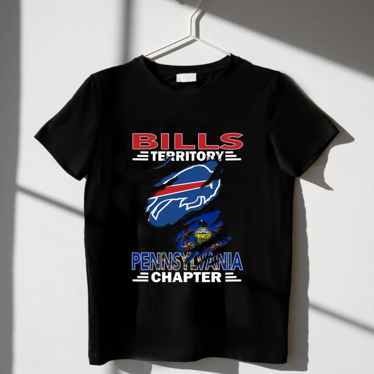 Show your unwavering support for the Buffalo Bills with our Bills Territory Pennsylvania Chapter T-Shirt, a must-have for any true fan! This graphic printed tee features a unique ripped design, perfect for game days, casual outings, or themed events. Crafted with comfort in mind, it’s ideal for all-season wear, ensuring you look stylish while cheering on your favorite team.