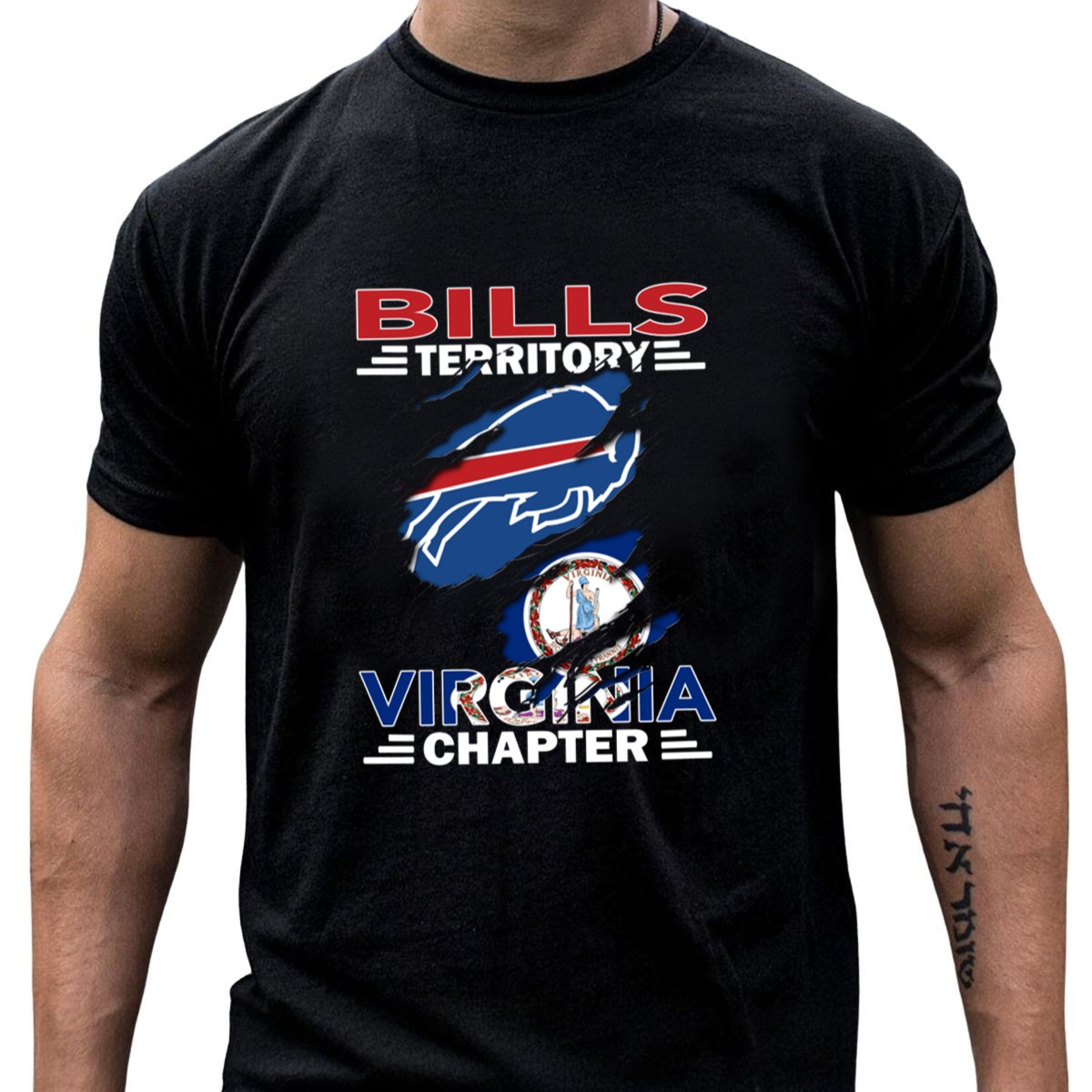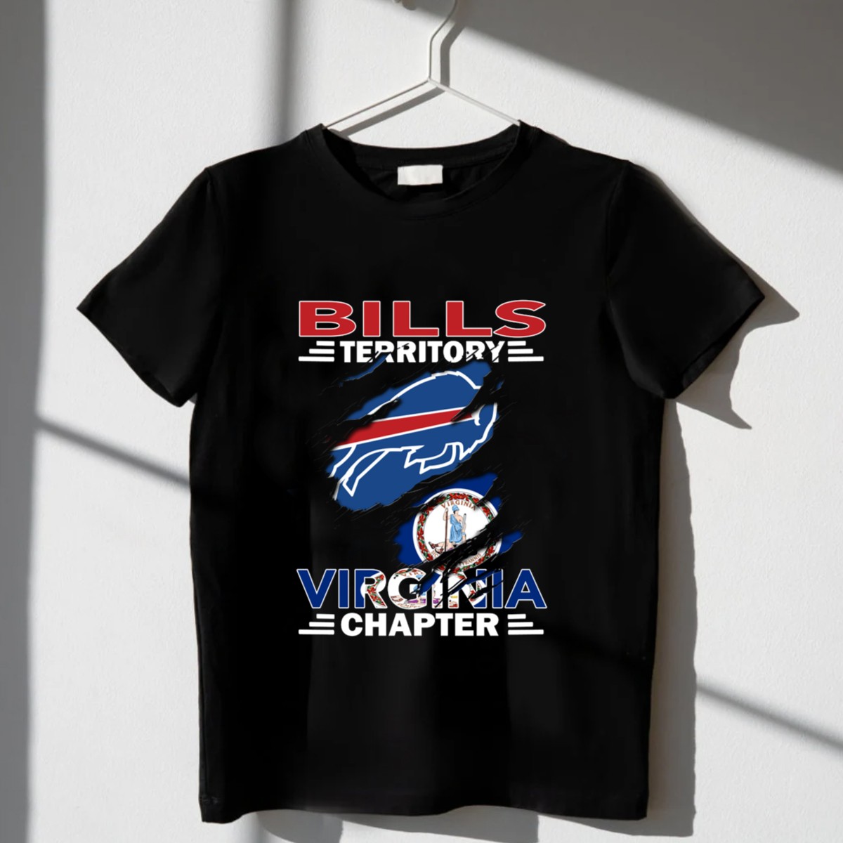 Show your unwavering support for the Buffalo Bills with the Bills Territory Virginia Chapter fan T-shirt! This stylish and comfortable graphic tee is perfect for die-hard fans who want to represent their love for the team in casual settings, at themed events, or during daily wear. Featuring a unique fan-made design printed right here in the USA, this shirt combines quality and passion, making it a must-have for any Bills enthusiast.