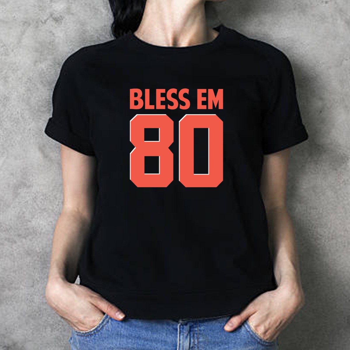 Show your unwavering support for the Cleveland Browns with our “Bless Em 80” T-shirt, designed for true fans who want to celebrate their team in style. Made for casual wear, themed events, or just daily outings, this shirt captures the spirit of football season while providing comfort and versatility. Its unique fan-made design is printed in the USA, making it a standout addition to any Browns enthusiast’s wardrobe.
