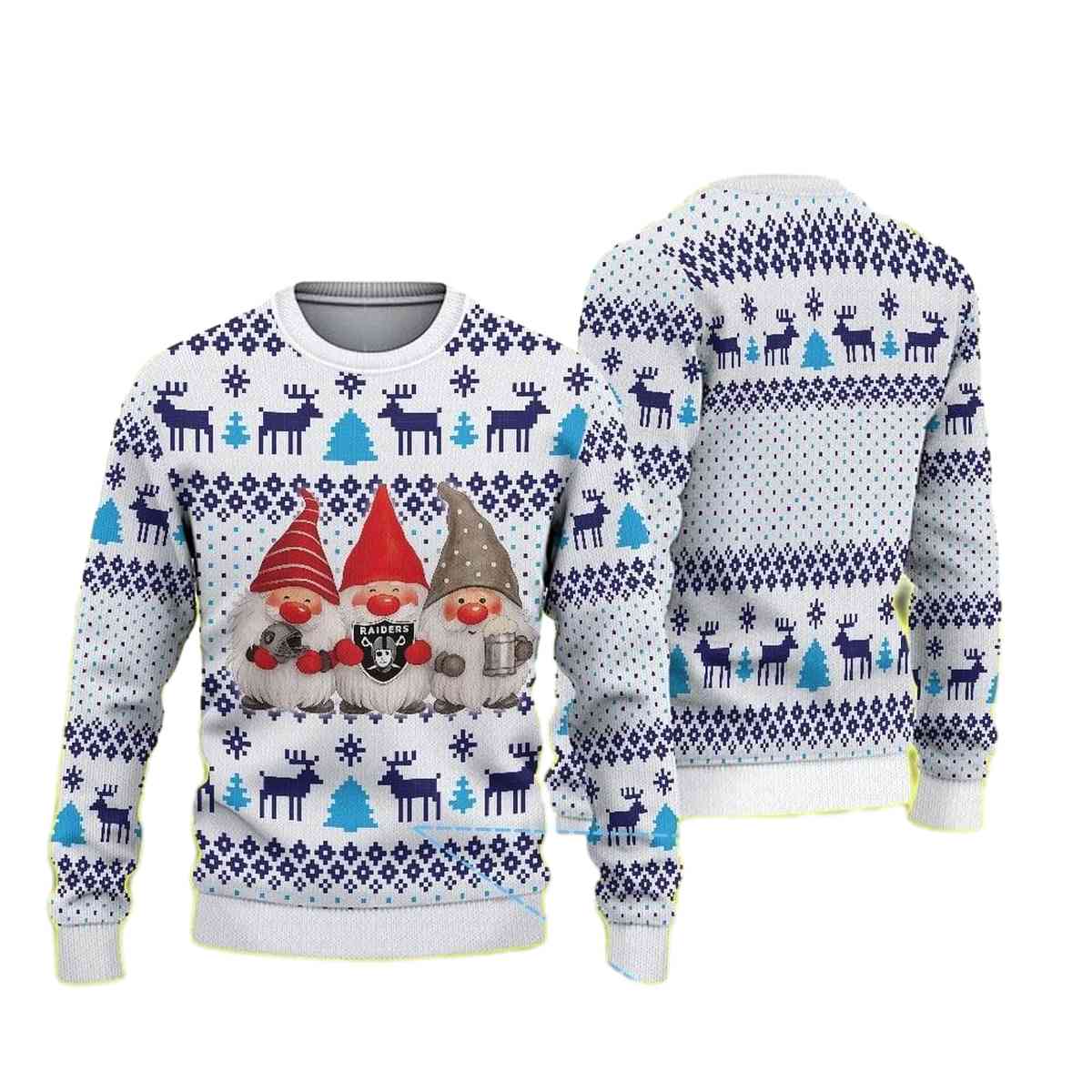 Get ready to spread some holiday cheer with our Blue Reindeer and Snowflake Patterns Featuring Gnome Trio and Las Vegas Raiders Ugly Sweater! Perfect for fans who love to combine festive fun with team spirit, this sweater is a must-have for holiday parties, cozy family gatherings, or simply lounging at home while feeling fabulous. With its unique design, you’ll be the life of the party, showcasing your love for the season and your team!